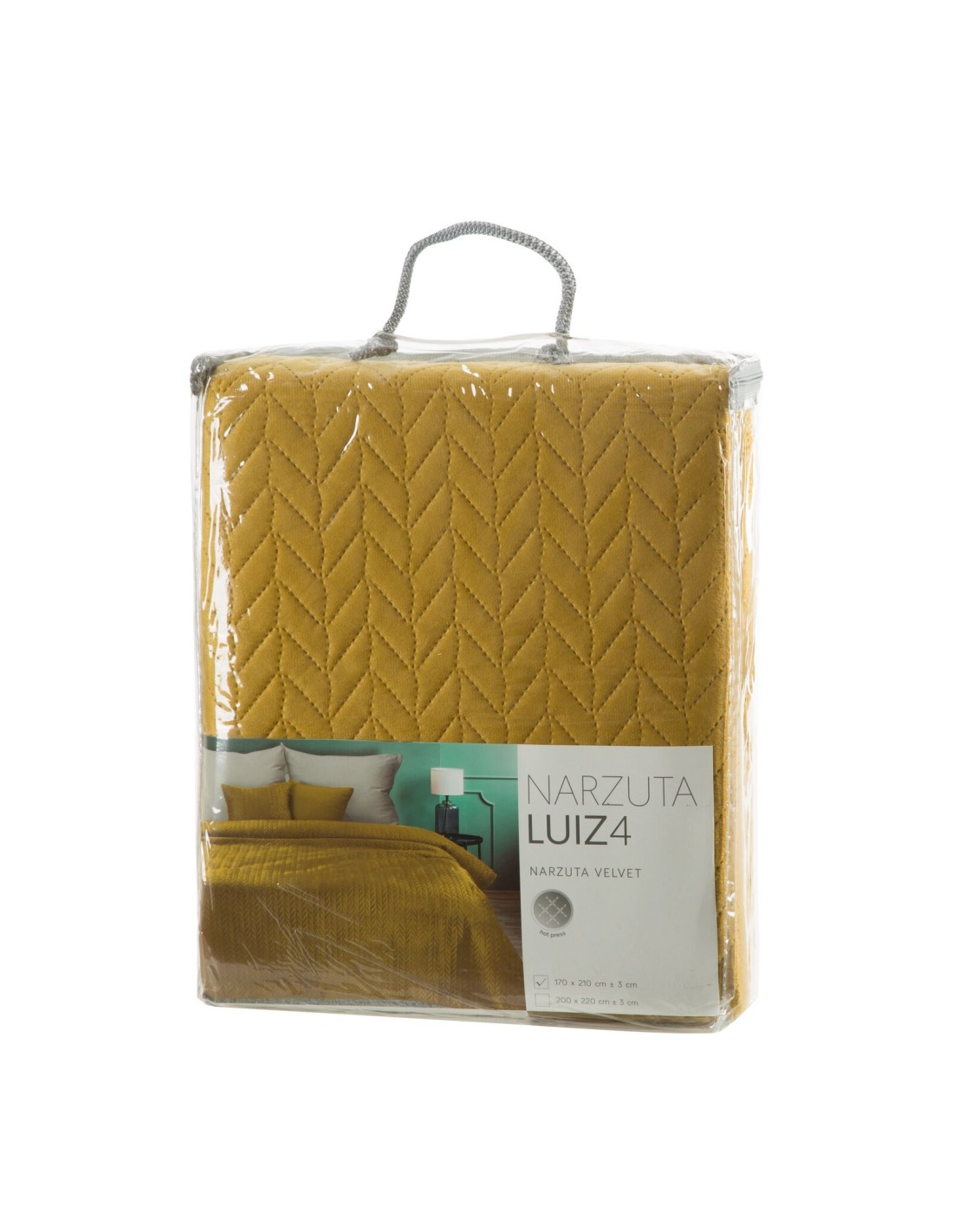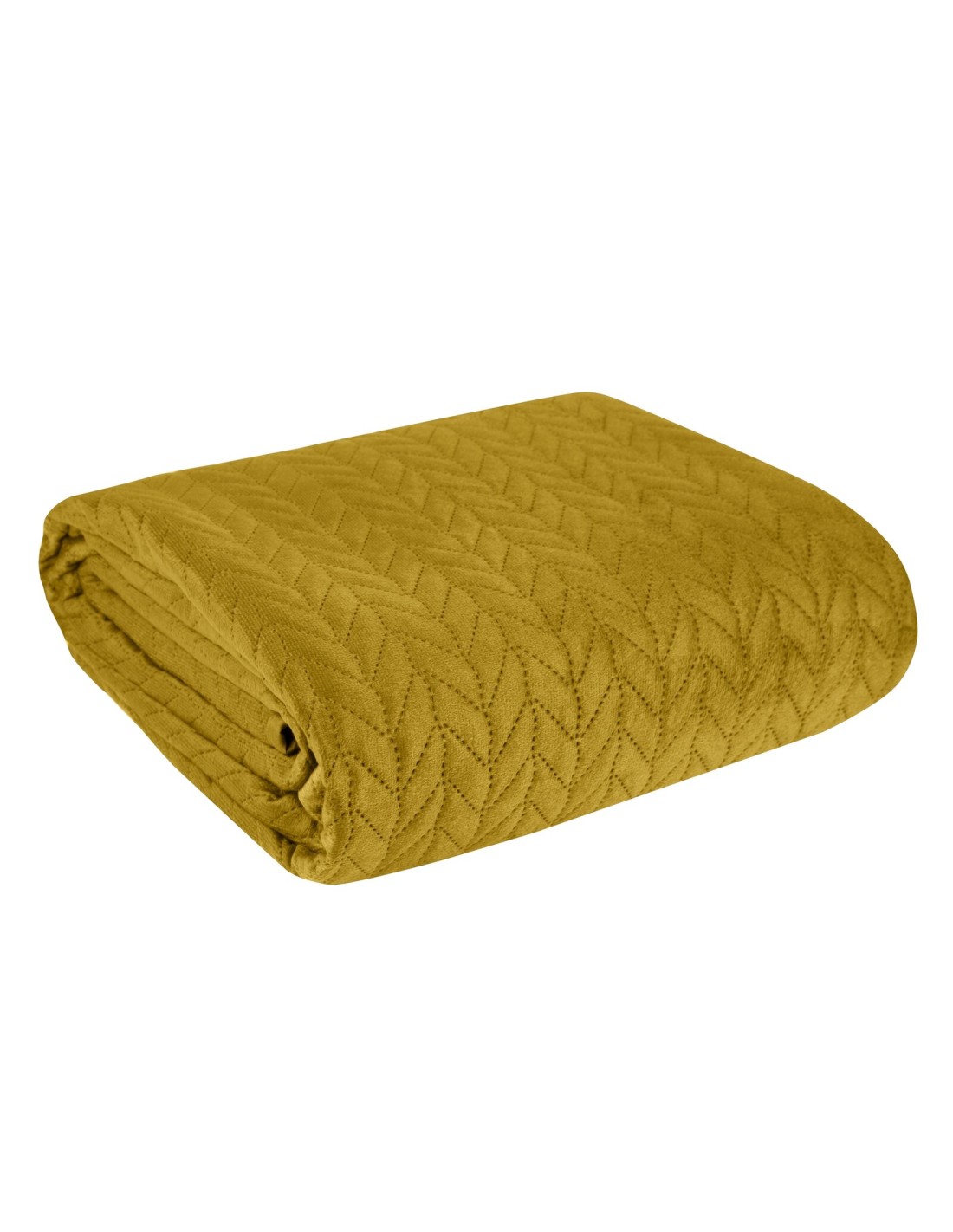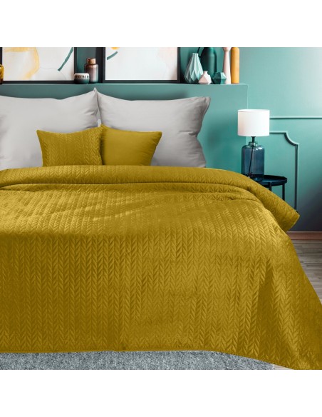 Narzuta welurowa,wykonana metodą hot press szerokość: 170 cm, długość: 210 cm, kolor: musztardowy, Gramatura: 150 GSM, Skład: 100% poliester