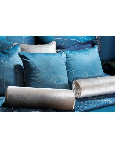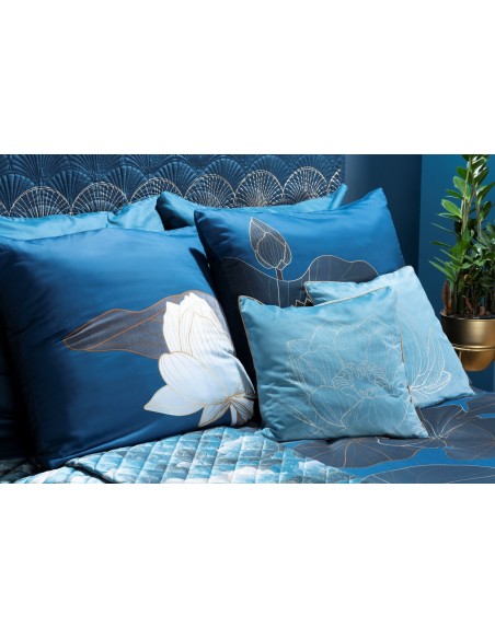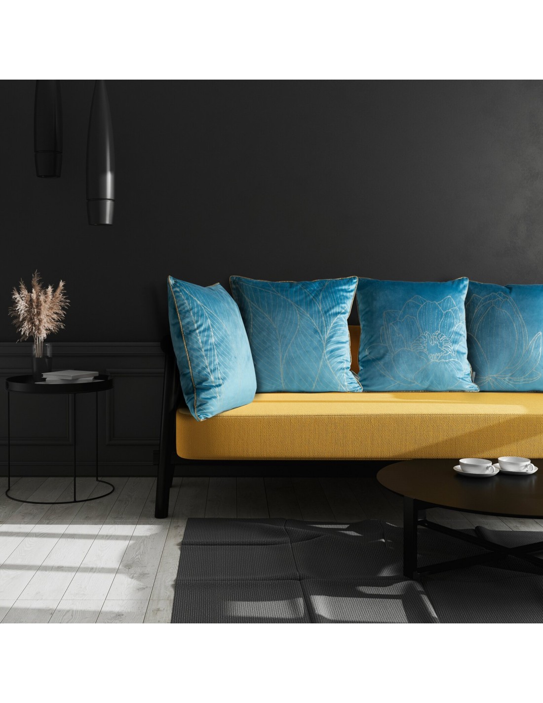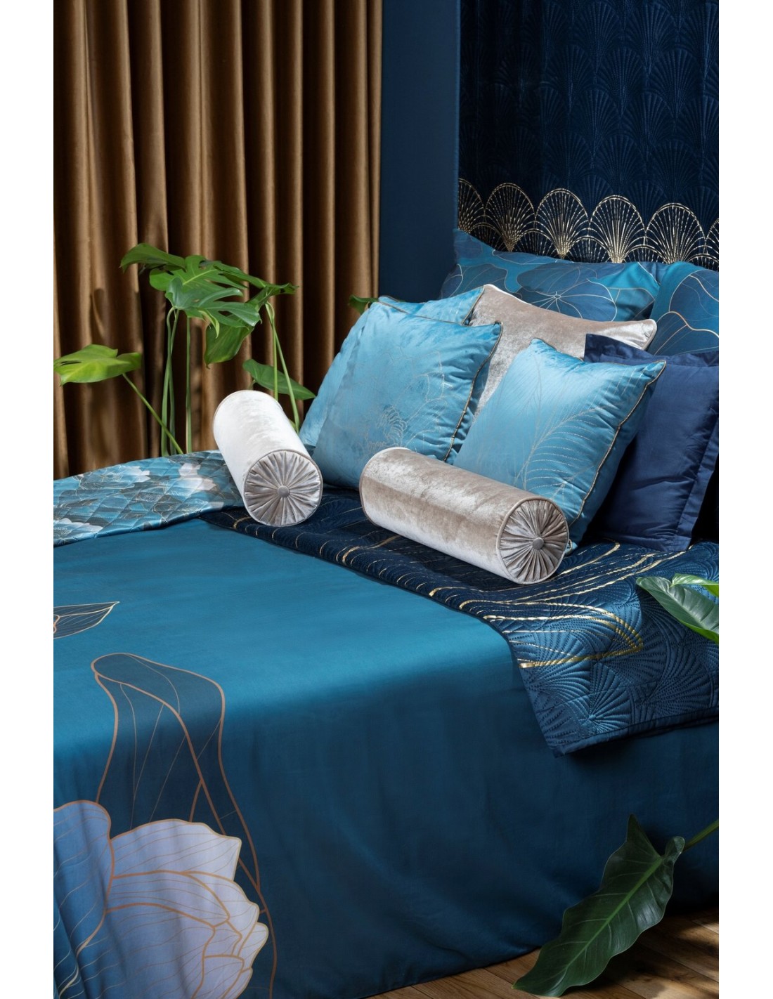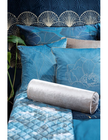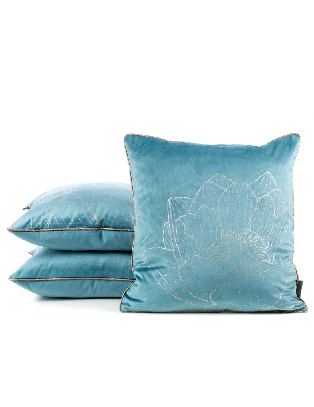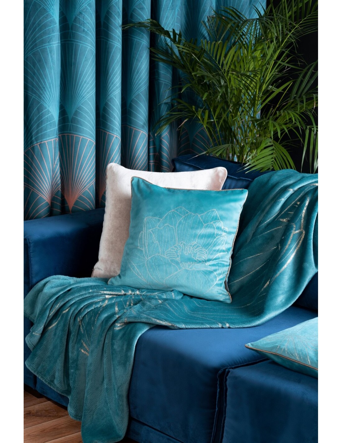 Welvetowa poszewka z nadrukiem,obszyta dekoracyjną lamówką szerokość: 45 cm, długość: 45 cm, kolor: turkusowy, Gramatura: 250 GSM, Skład: 100% poliester