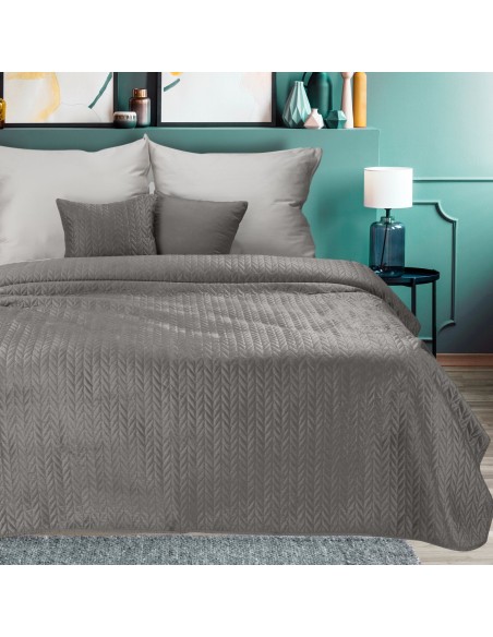 Narzuta welurowa,wykonana metodą hot press szerokość: 200 cm, długość: 220 cm, kolor: beżowy, Gramatura: 150 GSM, Skład: 100% poliester