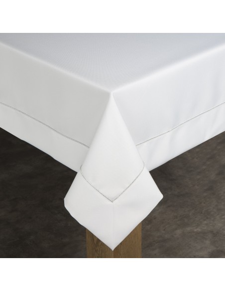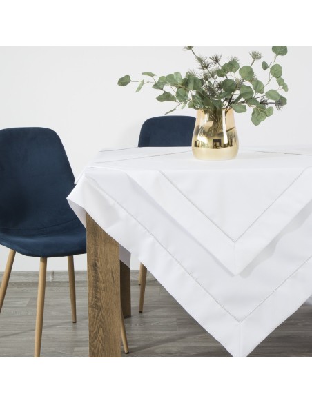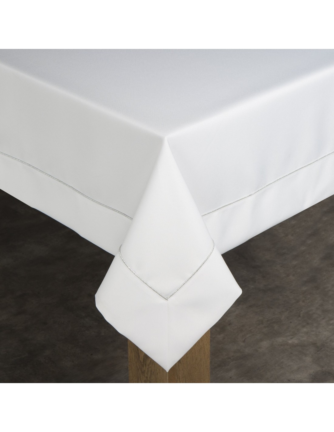 Obrus z srebrną lamówką szerokość: 145 cm, długość: 300 cm, kolor: biały, Skład: 100% poliester