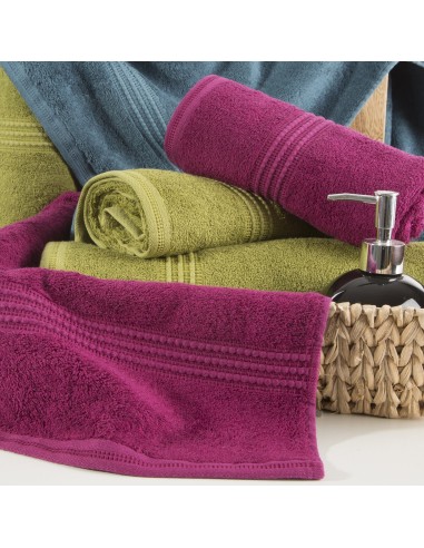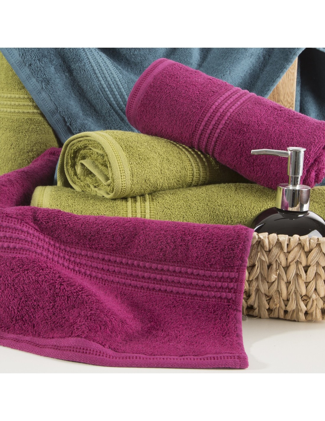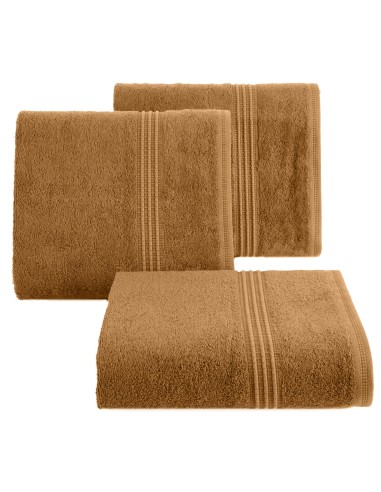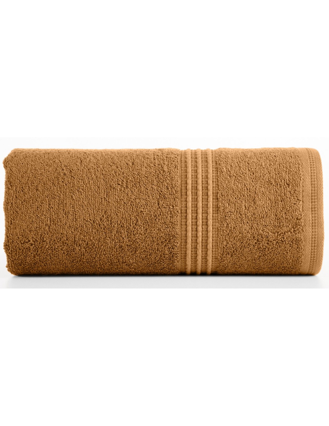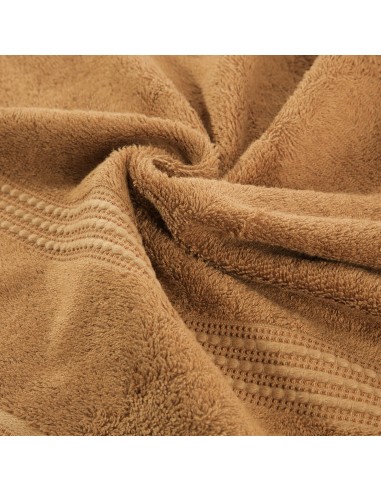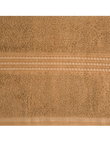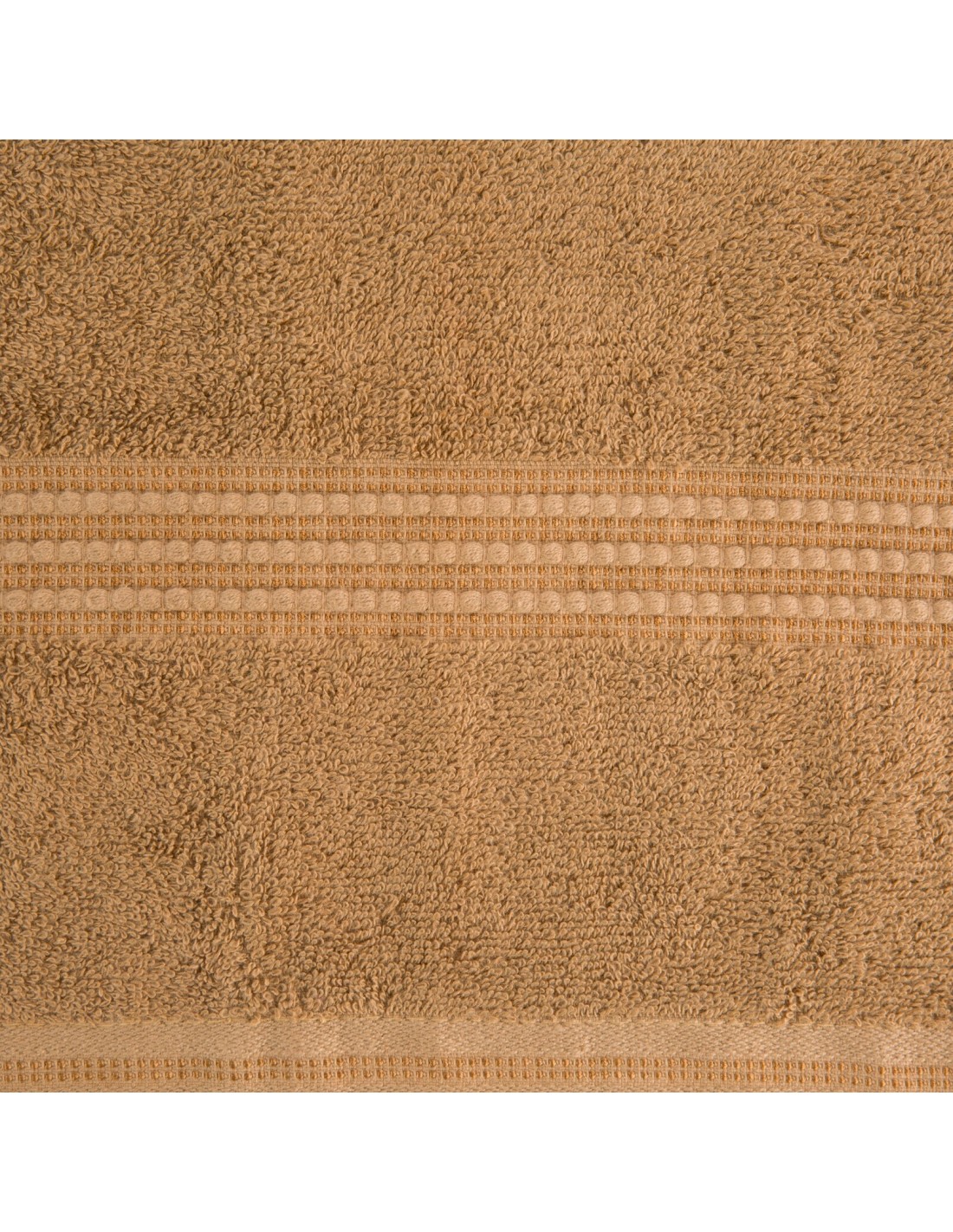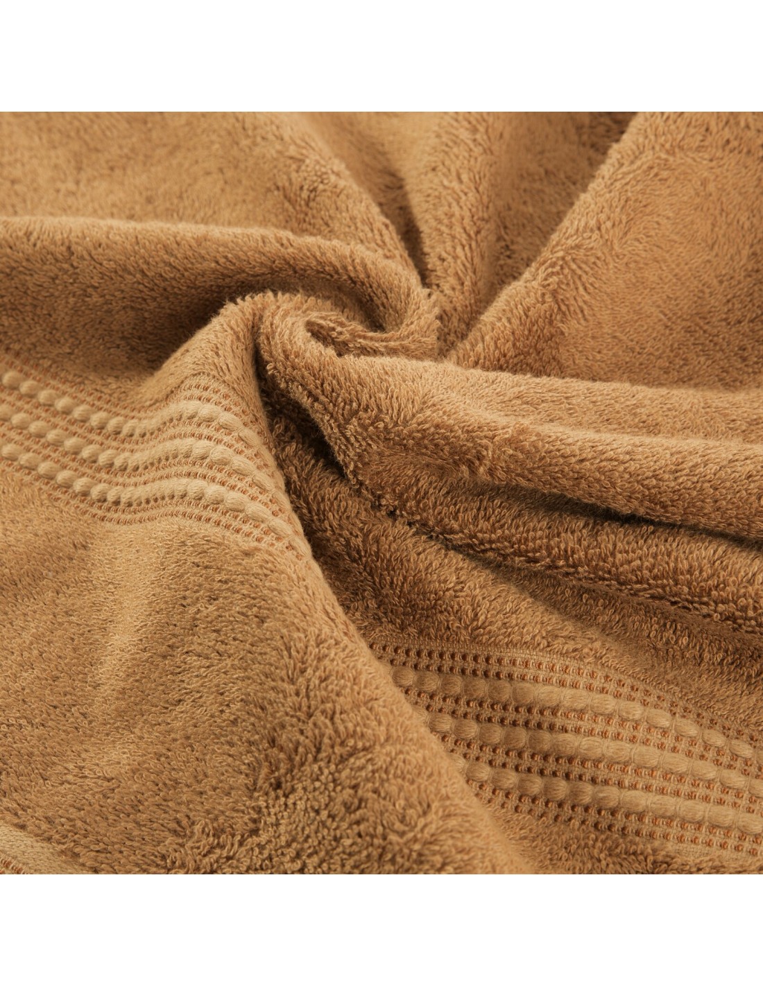 Ręcznik bambusowy z ozdobną bordiurą w pasy szerokość: 50 cm, długość: 90 cm, kolor: brązowy, Gramatura: 500 GSM, Skład: 100% wiskoza z włókna bambusowego; część ozdobna: 100% bawełna