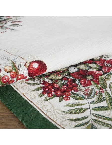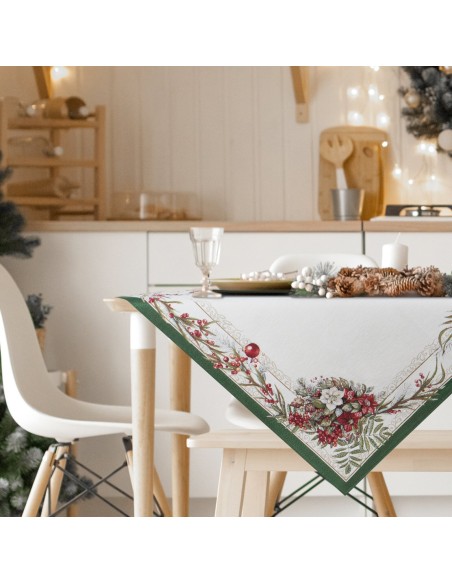 Gobelinowy obrus dekoracyjny szerokość: 100 cm, długość: 100 cm, kolor: zielony, Gramatura: 450 GSM, Skład: 85% poliester, 15% bawełna
