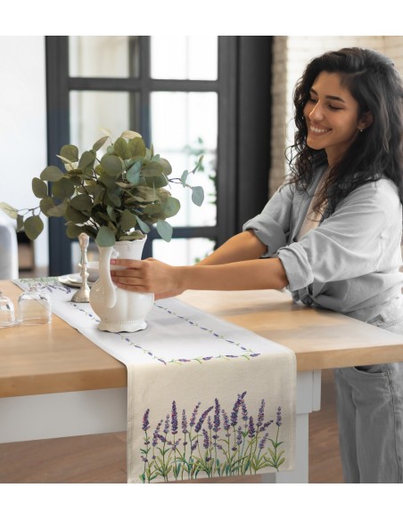 Gobelinowy obrus dekoracyjny szerokość: 40 cm, długość: 100 cm, kolor: naturalny, Gramatura: 400 GSM, Skład: 68% poliester, 32% bawełna