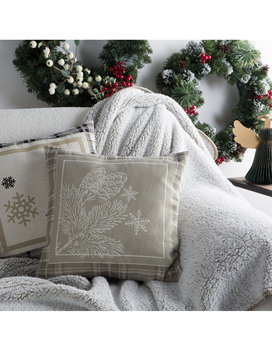 Poszewka gobelinowy szerokość: 45 cm, długość: 45 cm, kolor: ciemnobeżowy, Gramatura: 410 GSM, Skład: 63% poliester, 34% bawełna, 3% akryl