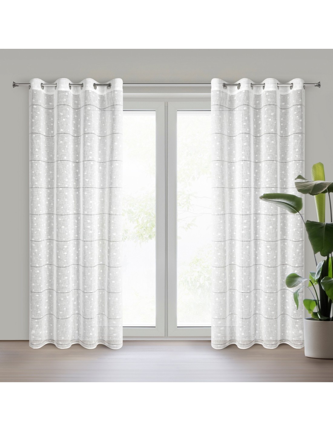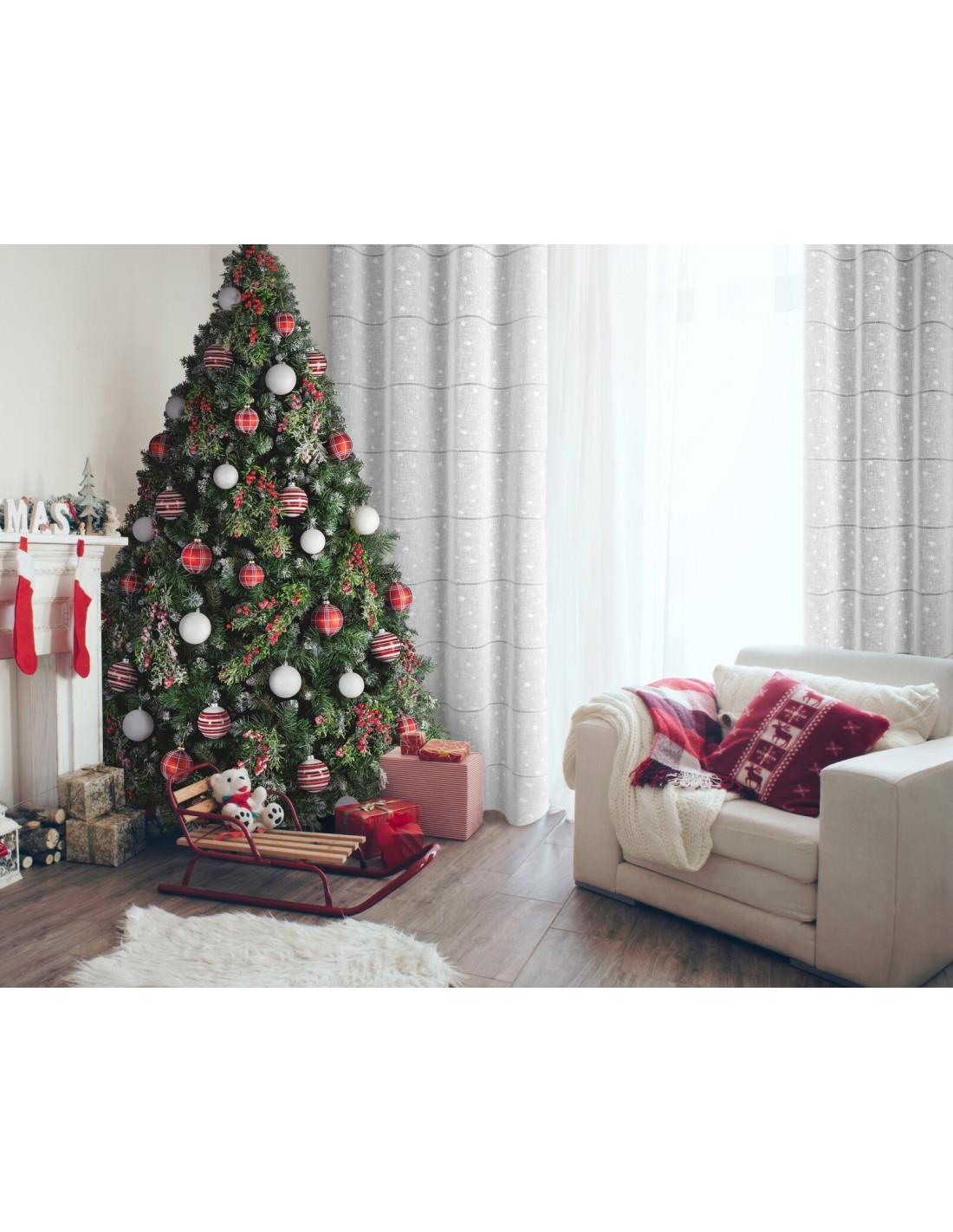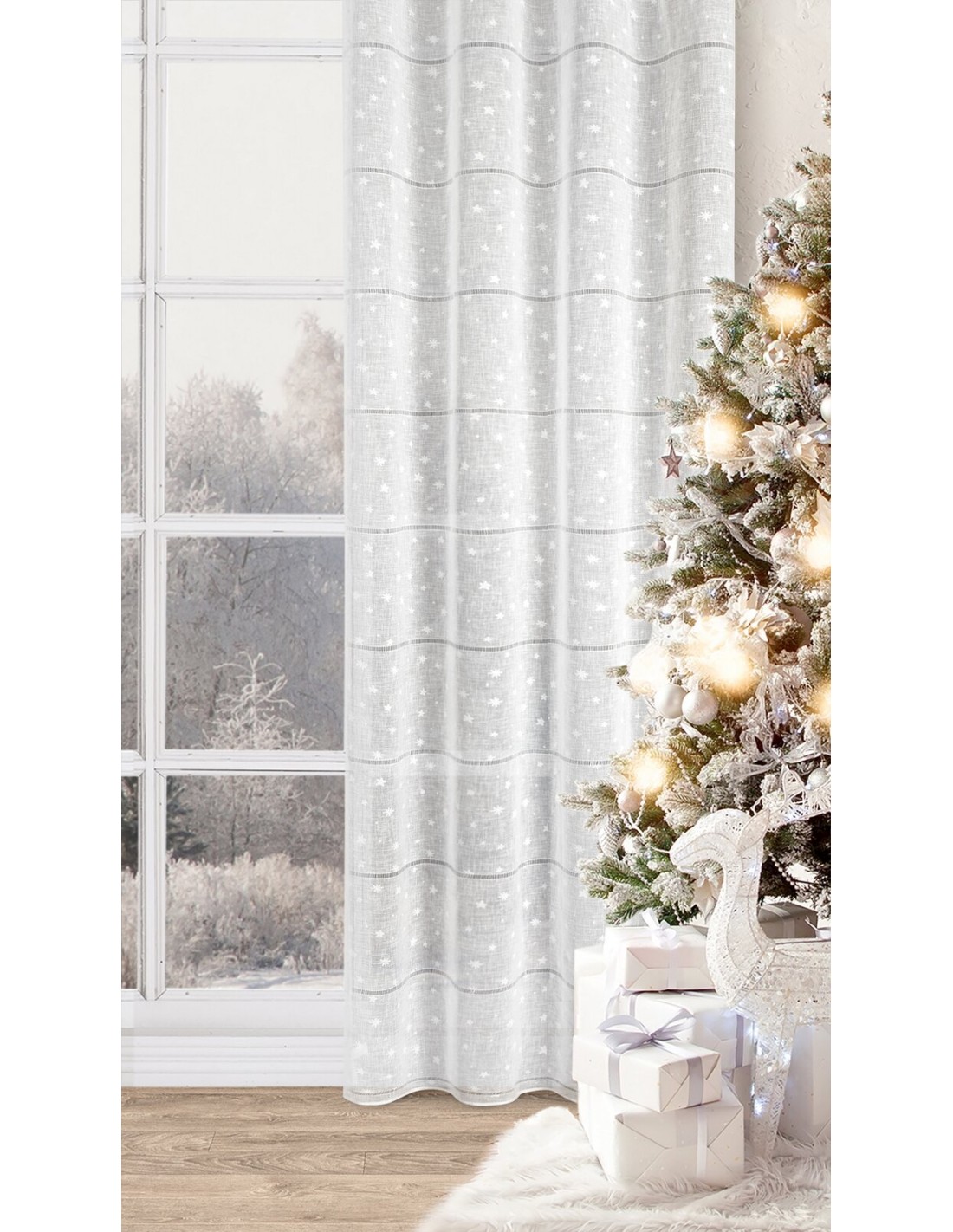 Firana gotowa z motywem świątecznym szerokość: 140 cm, długość: 250 cm, kolor: biały, Gramatura: 138 GSM, Skład: 100% poliester