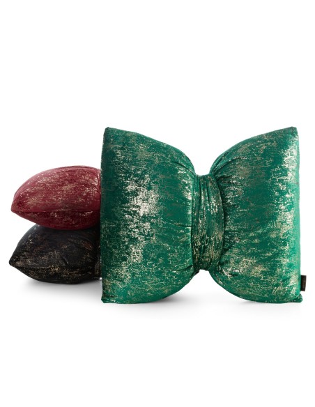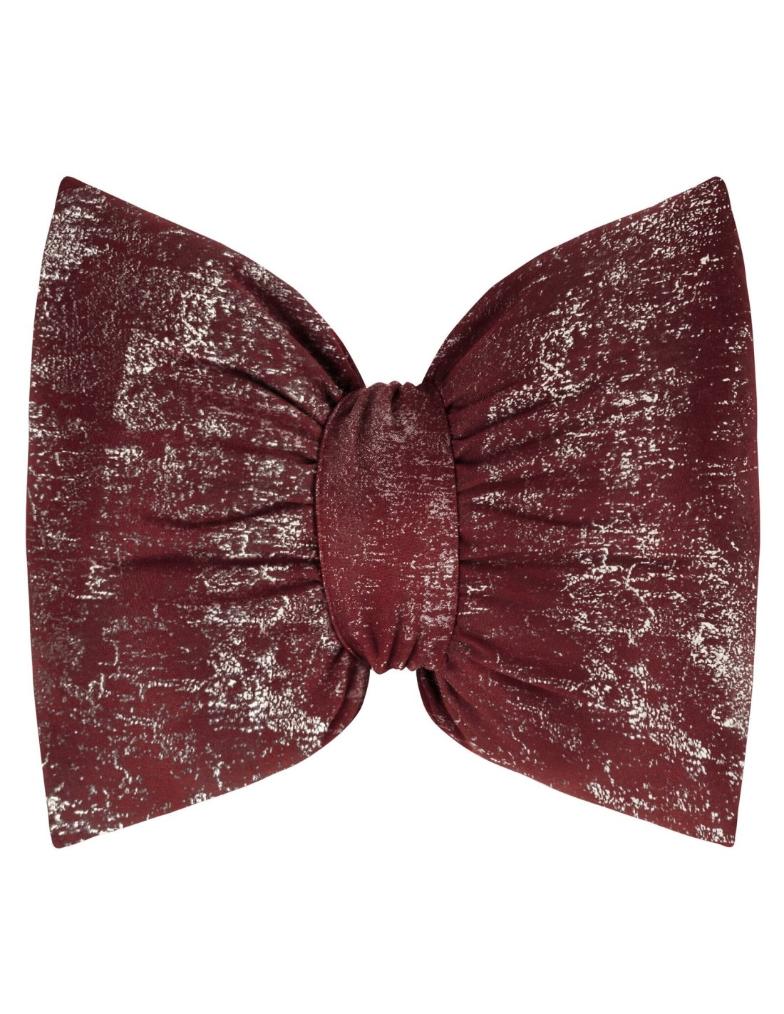 Welwetowa poduszka w kształcie kokardy z błyszczącym nadrukiem szerokość: 45 cm, długość: 55 cm, kolor: bordowy, Gramatura: 240 GSM, Skład: 100% poliester