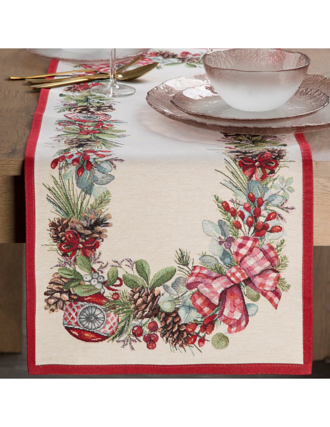 święteczny gobelinowy bieżnik dekoracyjny szerokość: 45 cm, długość: 100 cm, kolor: naturalny, Gramatura: 400 GSM, Skład: 68% poliester, 32% bawełna