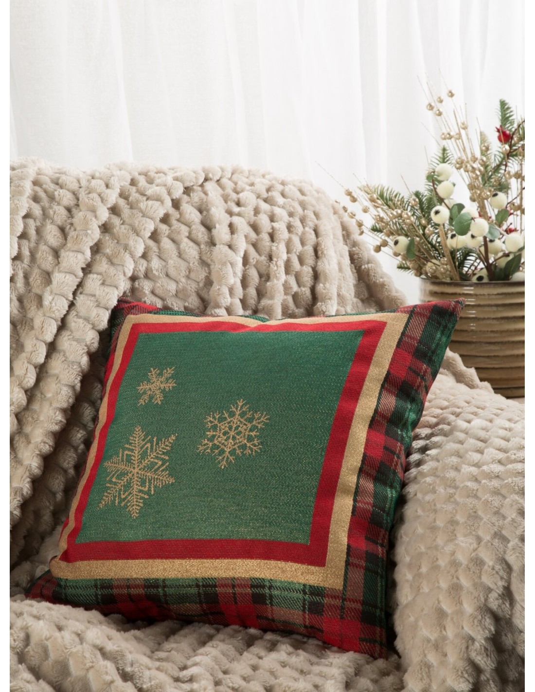 Poszewka gobelinowy szerokość: 45 cm, długość: 45 cm, kolor: czerwony, Gramatura: 410 GSM, Skład: 53% poliester, 40% bawełna, 4% nić metaliczna, 3% akryl