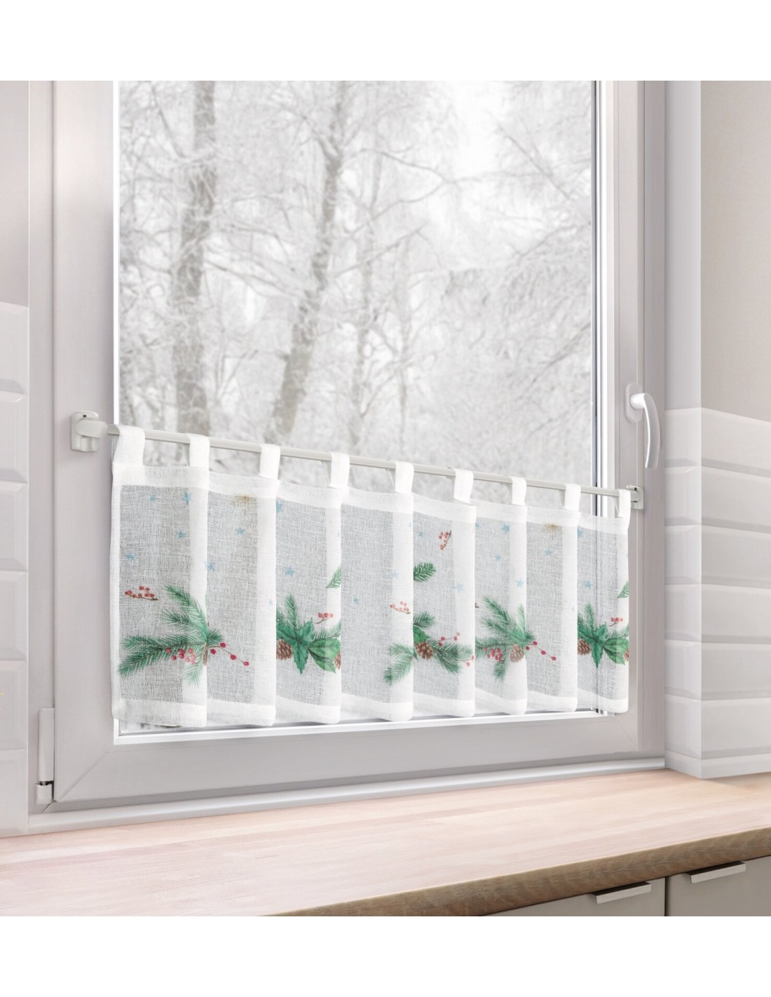 Zazdrostka z świątecznym motywem szerokość: 150 cm, długość: 30 cm, kolor: biały, Gramatura: 135 GSM, Skład: 100% poliester