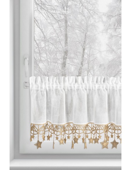 Zazdrostka z świąteczną obszywką szerokość: 150 cm, długość: 30 cm, kolor: biały, Gramatura: 75 GSM, Skład: 100% poliester