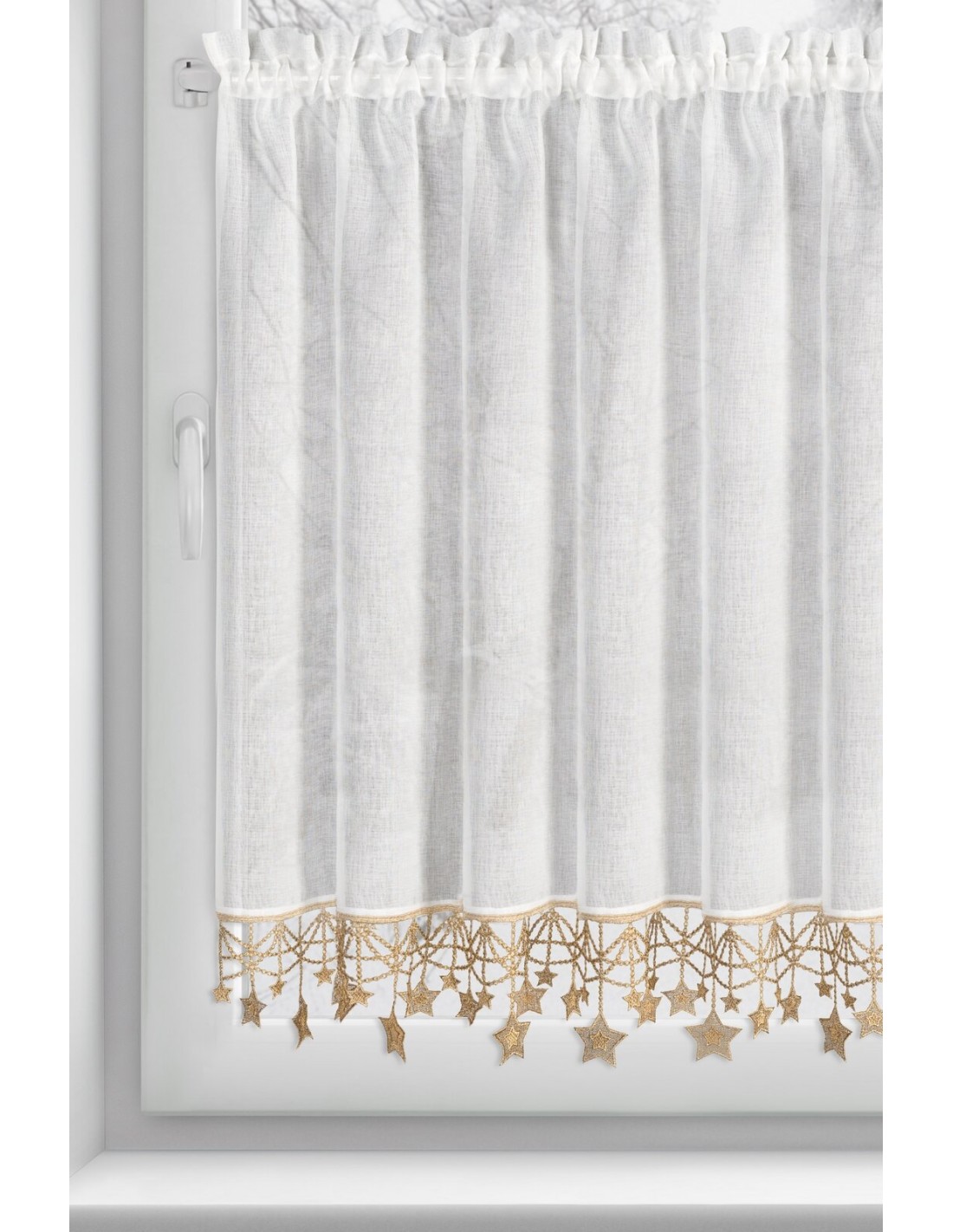 Zazdrostka z świąteczną obszywką szerokość: 150 cm, długość: 90 cm, kolor: biały, Gramatura: 75 GSM, Skład: 100% poliester