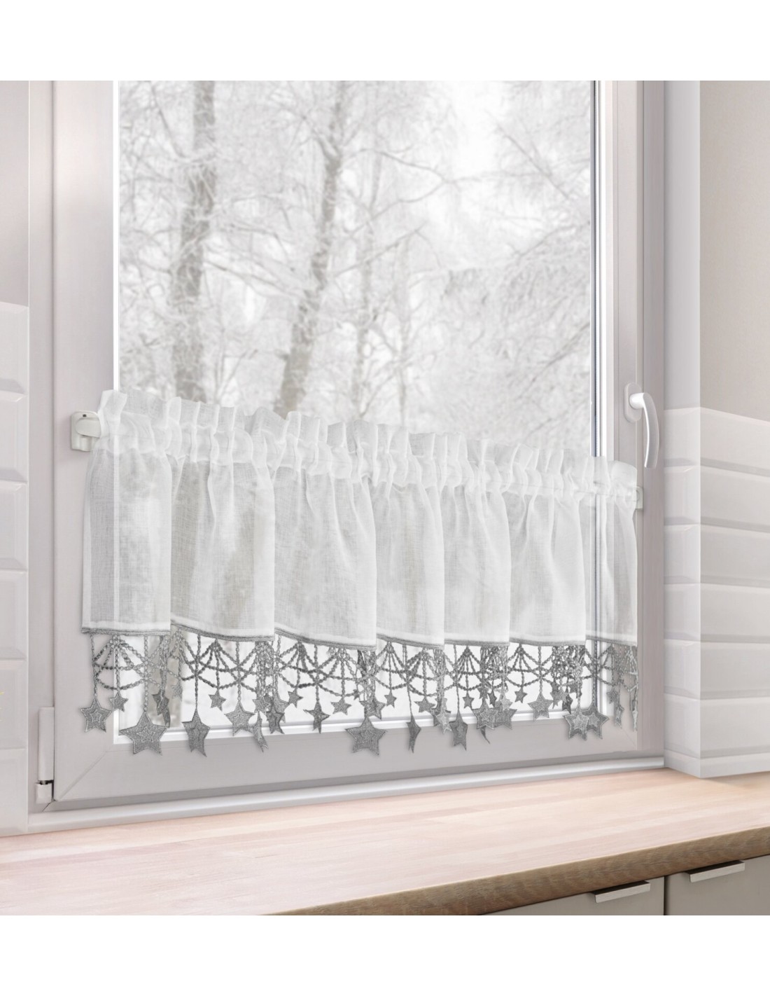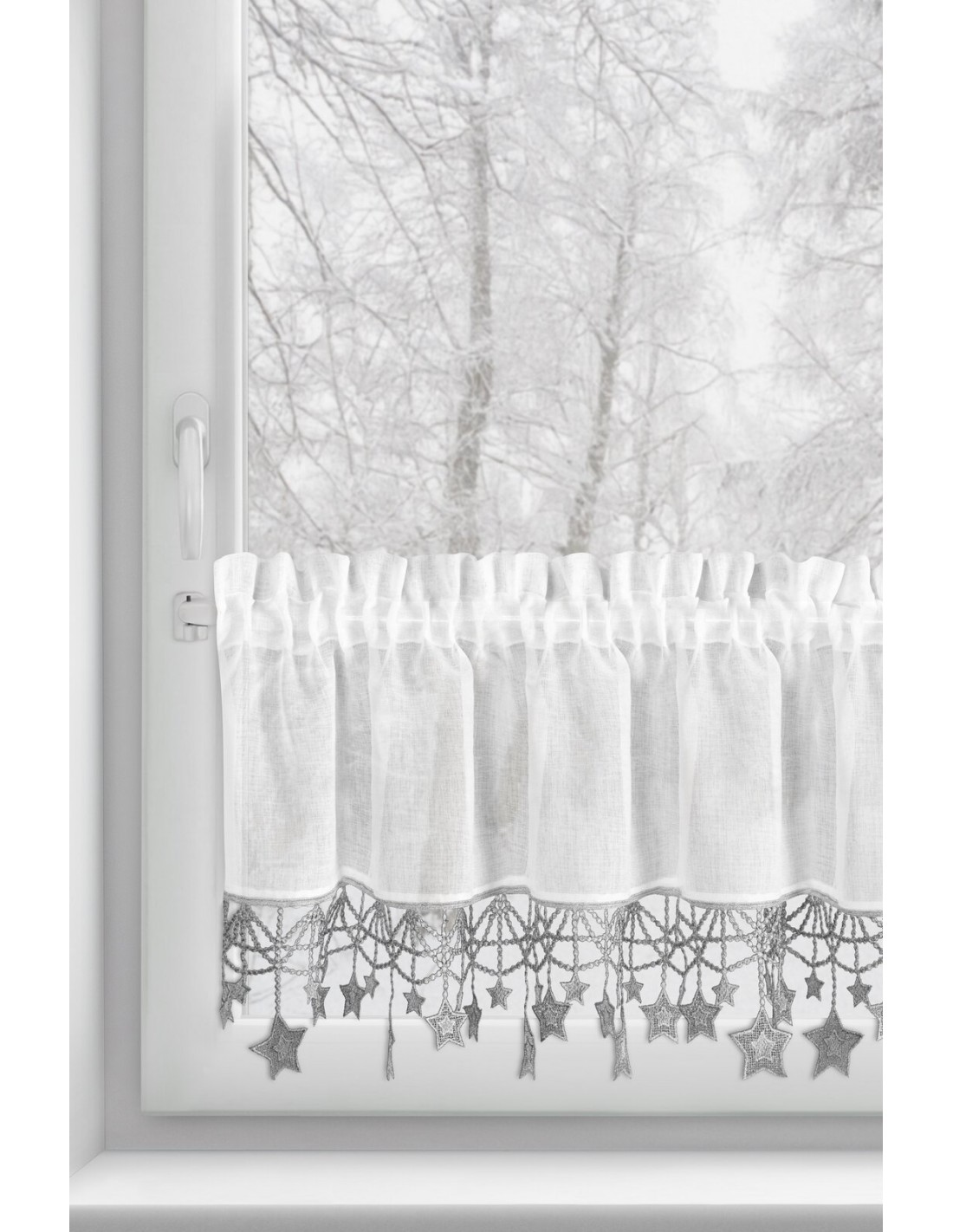 Zazdrostka z świąteczną obszywką szerokość: 150 cm, długość: 30 cm, kolor: biały, Gramatura: 7532 GSM, Skład: 100% poliester