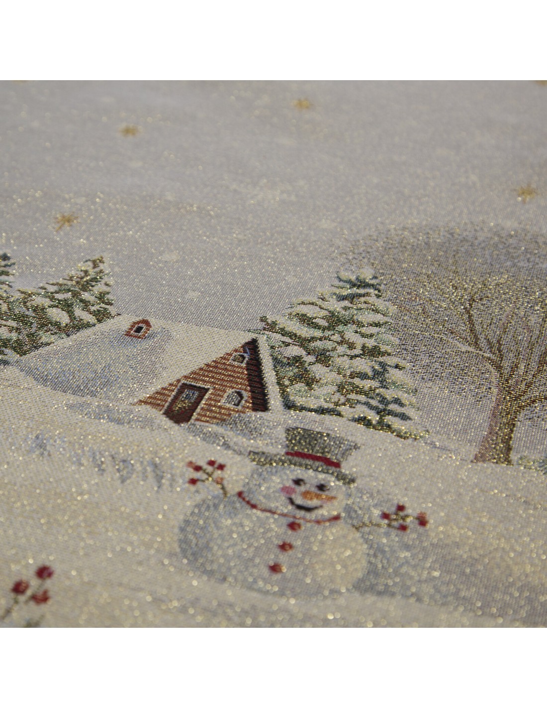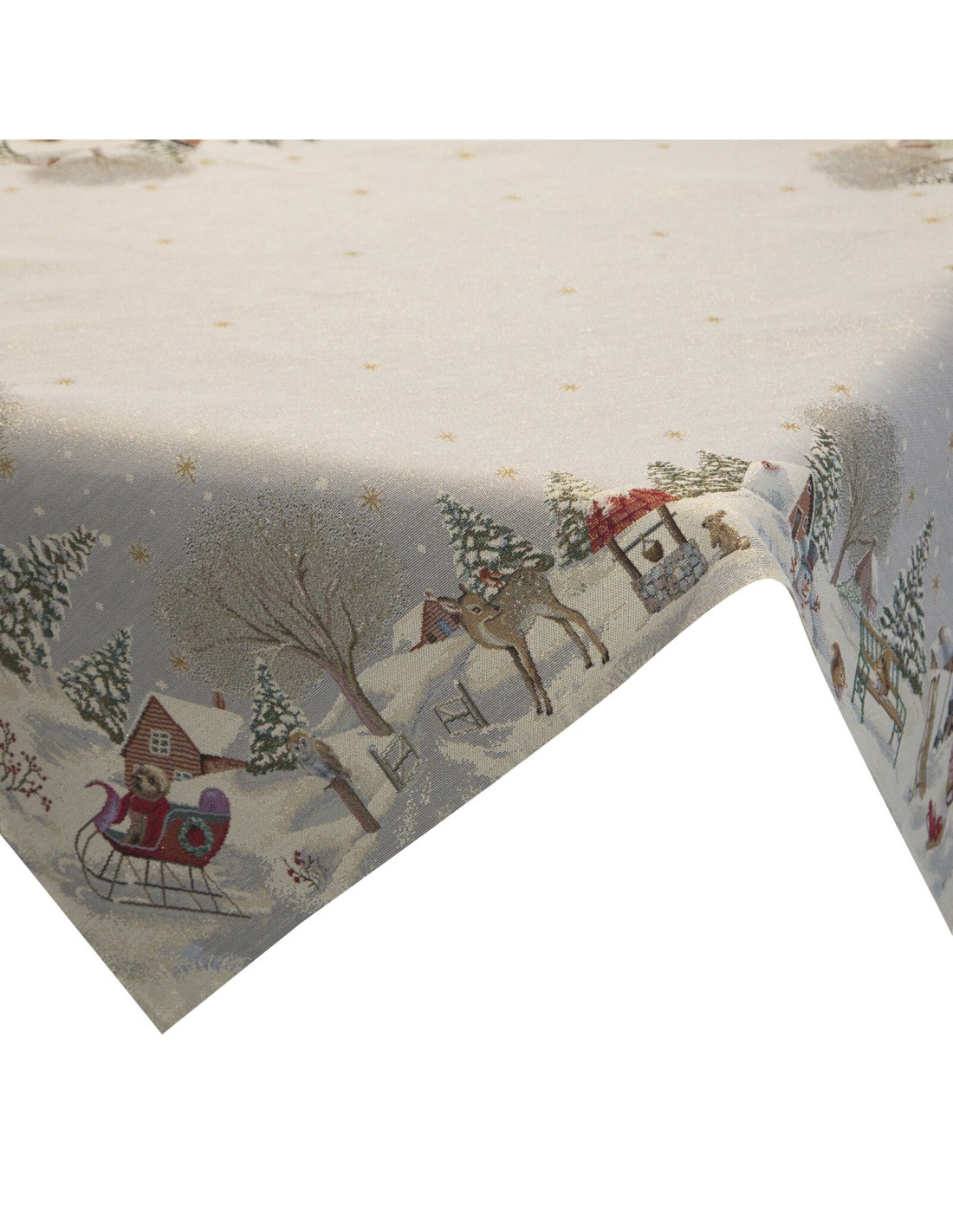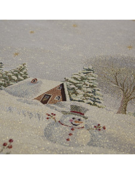 Obrus gobelinowy ze świątecznym wzorem szerokość: 140 cm, długość: 180 cm, kolor: popielaty, Gramatura: 315 GSM, Skład: 53% poliester, 40% bawełna, 4% nić metaliczna, 3% akryl