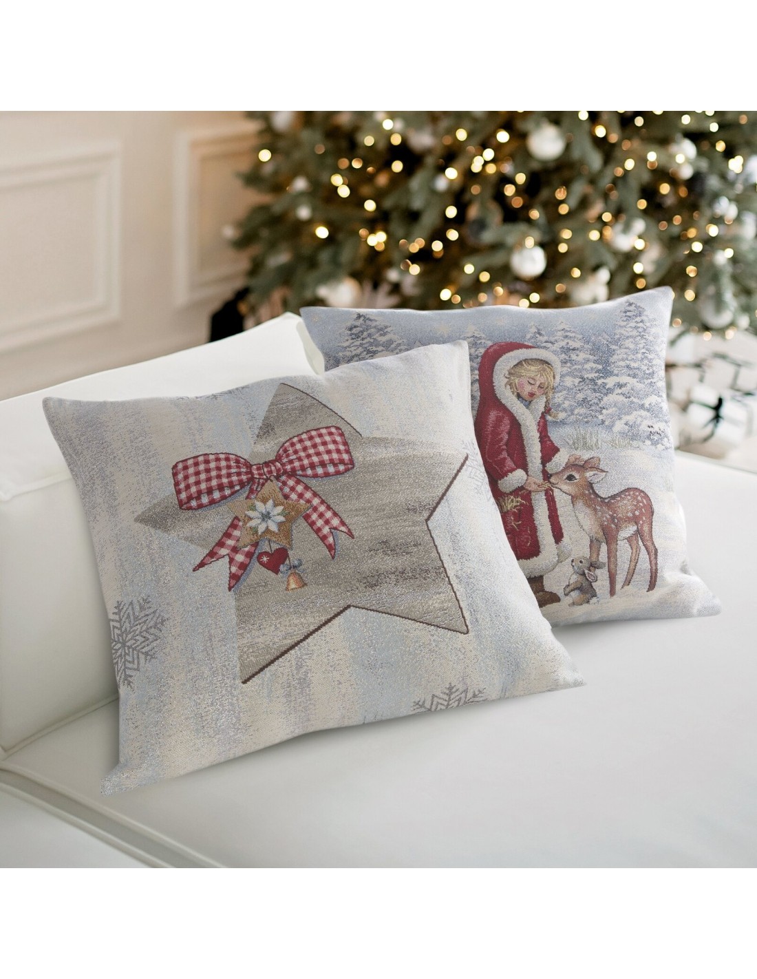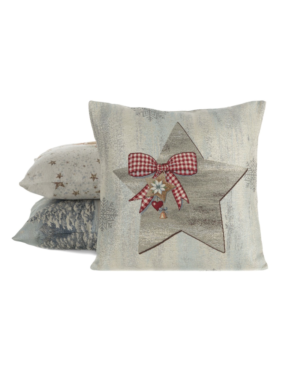 Poszewka gobelinowa ze świątecznym wzorem szerokość: 45 cm, długość: 45 cm, kolor: popielaty, Gramatura: 315 GSM, Skład: 53% poliester, 40% bawełna, 4% nić metaliczna, 3% akryl