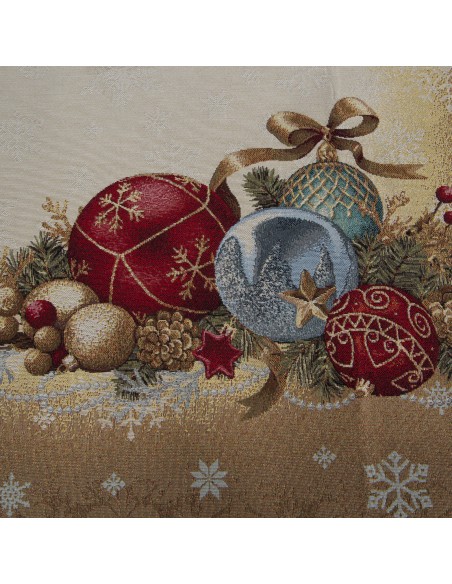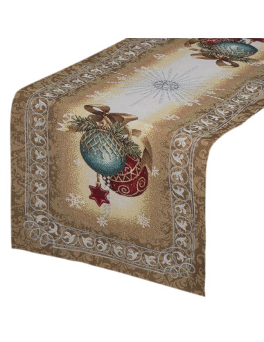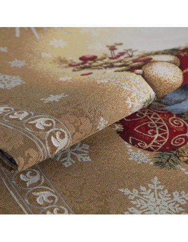 Obrus gobelinowy ze świątecznym wzorem szerokość: 40 cm, długość: 100 cm, kolor: złoty, Gramatura: 315 GSM, Skład: 53% poliester, 40% bawełna, 4% nić metaliczna, 3% akryl
