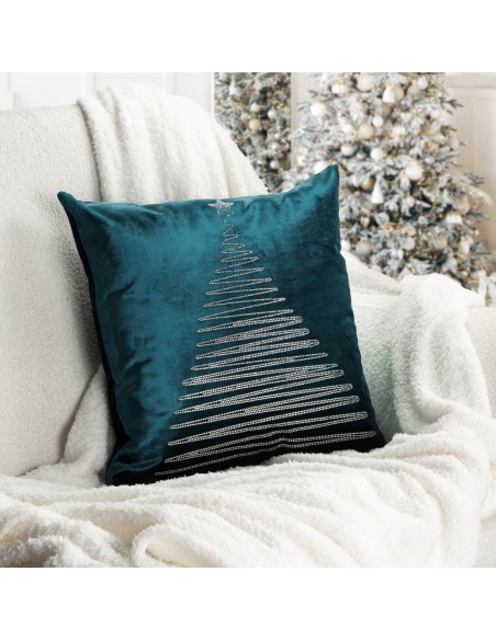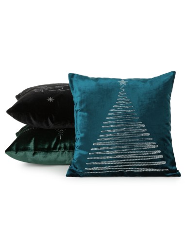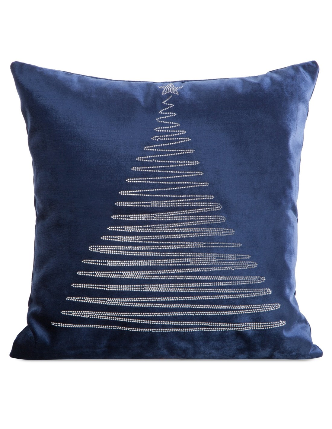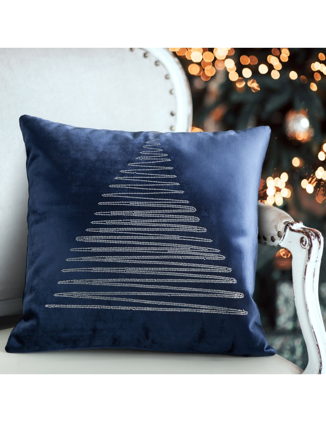 świąteczna poszewka dekoracyjna z błyszczącym wzorem i ozdobną lamówką szerokość: 45 cm, długość: 45 cm, kolor: granatowy, Gramatura: 430 GSM, Skład: 100% poliester