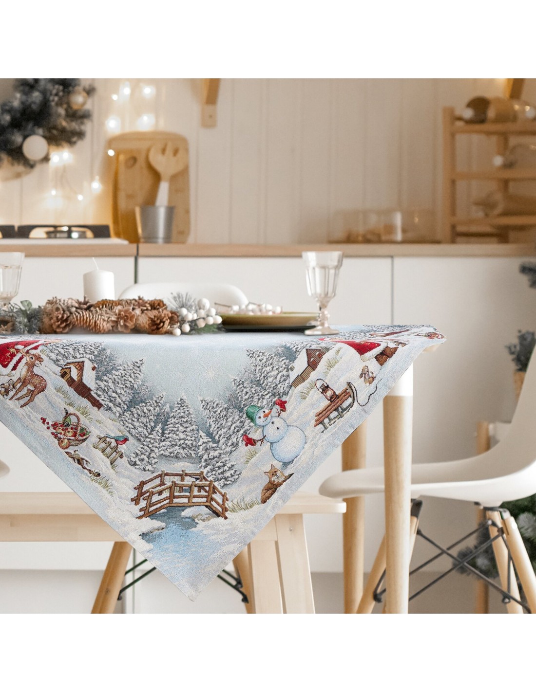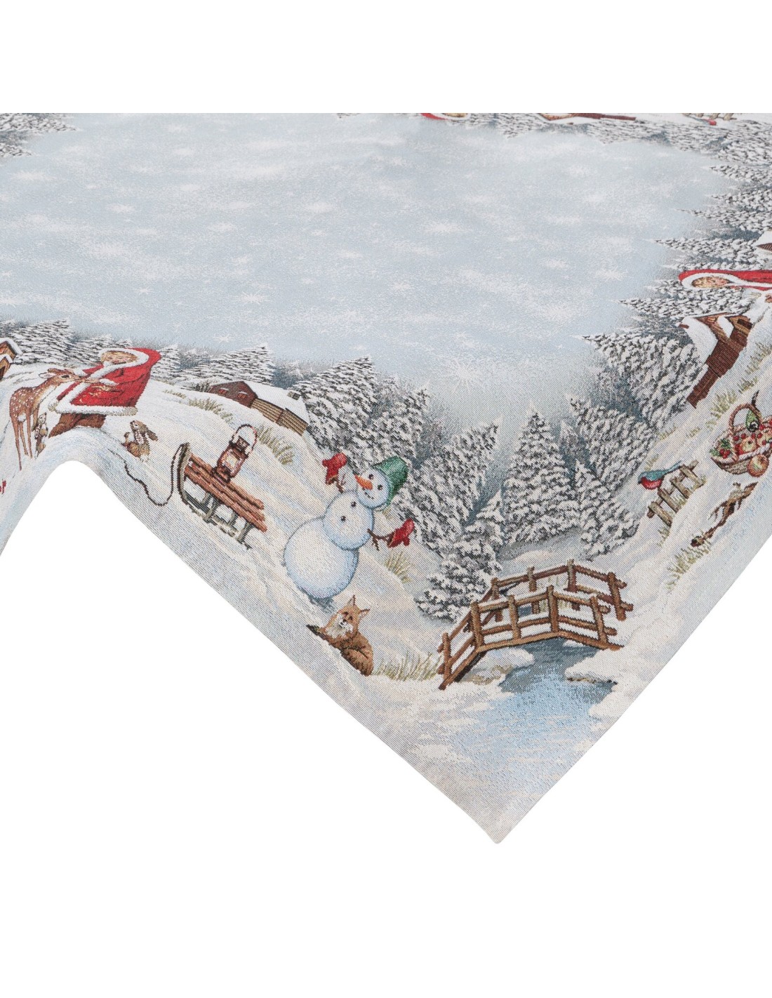 Obrus gobelinowy ze świątecznym wzorem szerokość: 100 cm, długość: 100 cm, kolor: srebrny, Gramatura: 410 GSM, Skład: 53% poliester, 40% bawełna, 4% nić metaliczna, 3% akryl