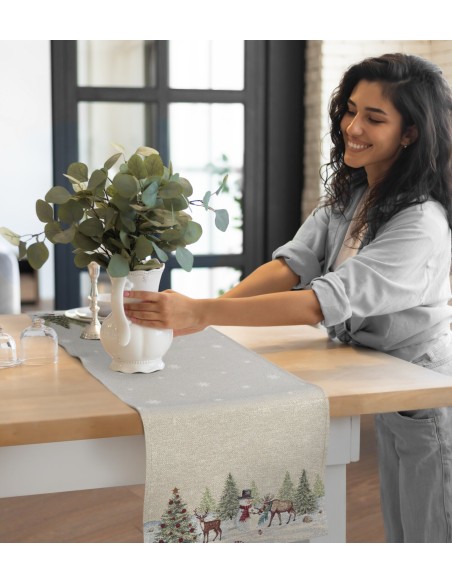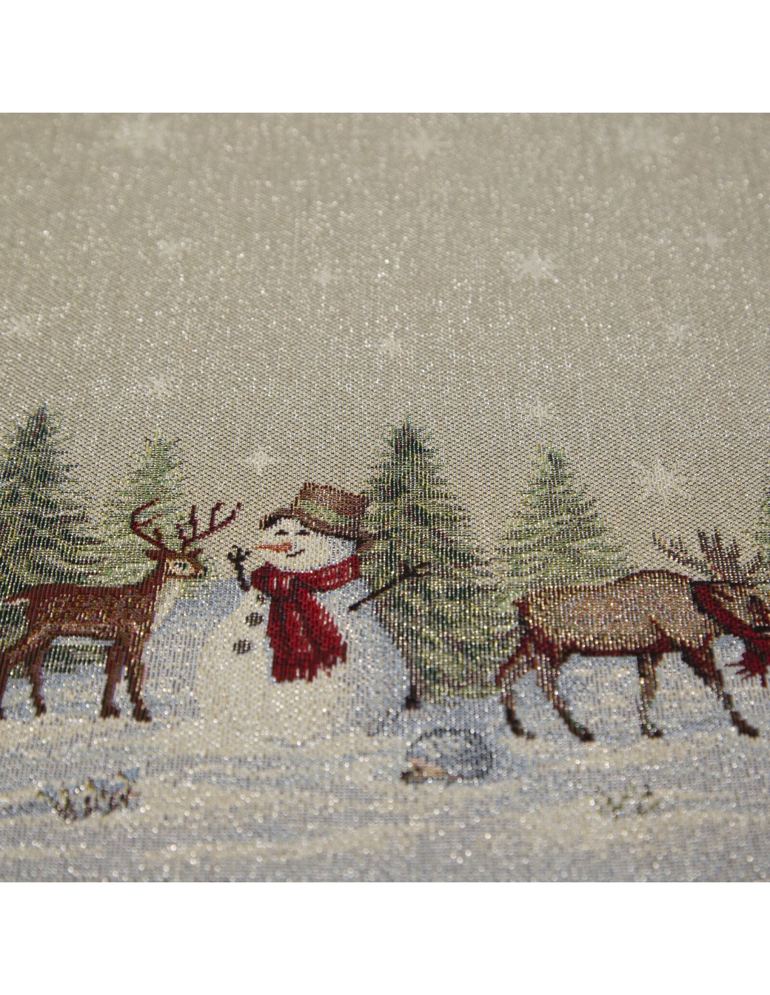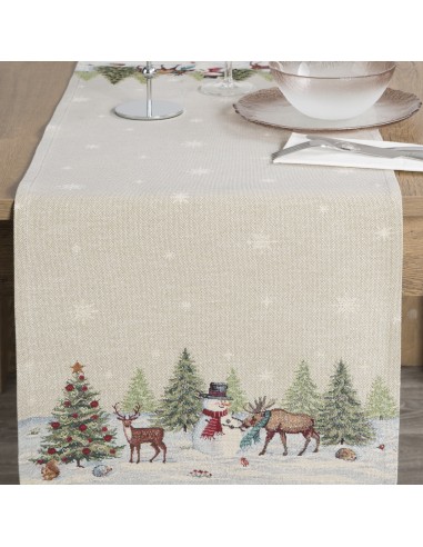Obrus gobelinowy ze świątecznym wzorem szerokość: 40 cm, długość: 100 cm, kolor: naturalny, Gramatura: 410 GSM, Skład: 53% poliester, 40% bawełna, 4% nić metaliczna, 3% akryl