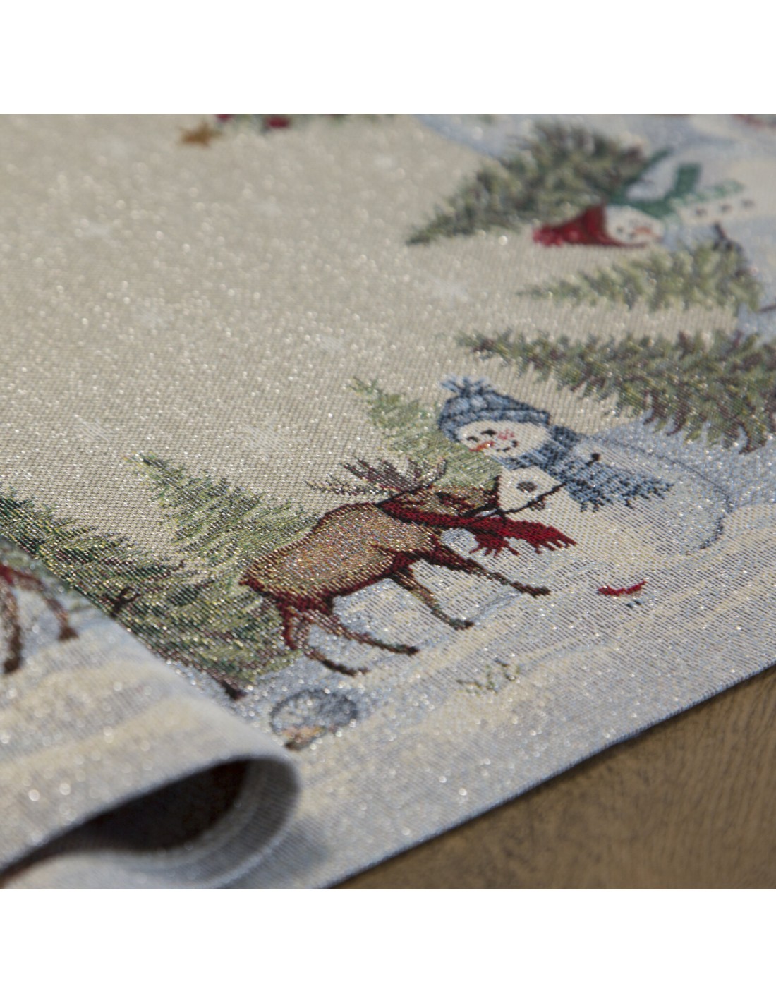Obrus gobelinowy ze świątecznym wzorem szerokość: 140 cm, długość: 180 cm, kolor: naturalny, Gramatura: 315 GSM, Skład: 53% poliester, 40% bawełna, 4% nić metaliczna, 3% akryl