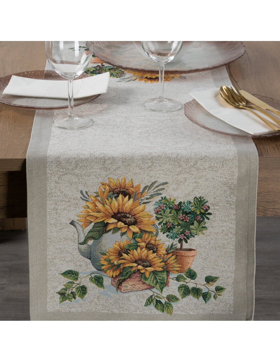 Obrus gobelinowy szerokość: 40 cm, długość: 100 cm, kolor: naturalny, Gramatura: 410 GSM, Skład: 63% poliester, 34% bawełna, 3% akryl