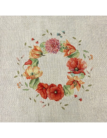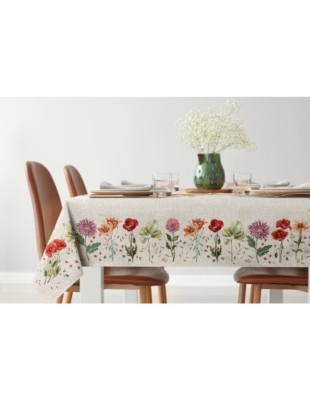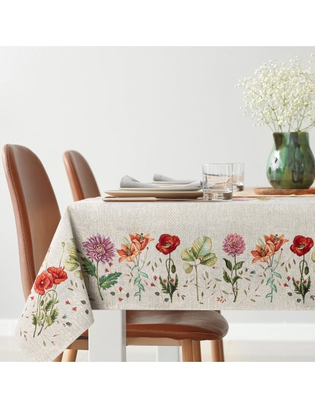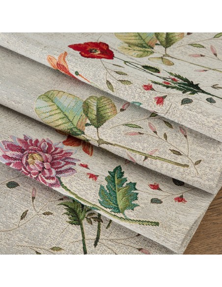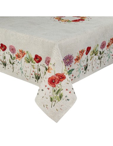 Obrus gobelinowy szerokość: 140 cm, długość: 180 cm, kolor: szarobeżowy, Gramatura: 410 GSM, Skład: 63% poliester, 34% bawełna, 3% akryl