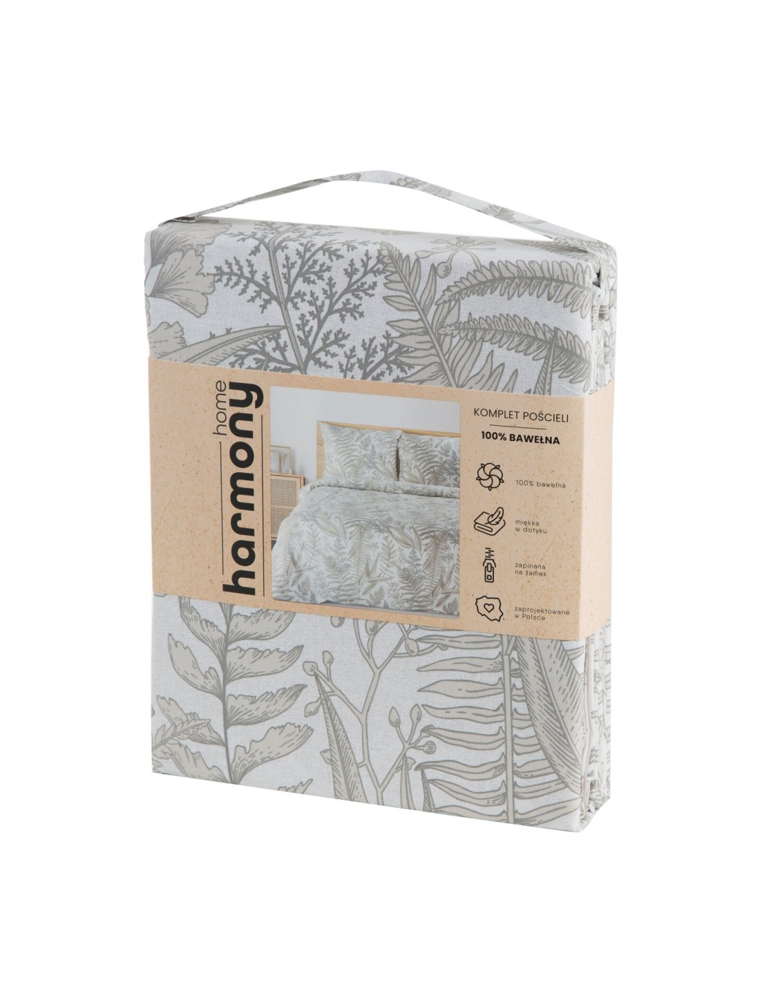 Komplet pościeli bawełnianej z nadrukiem. szerokość: 160 cm, długość: 200 cm, kolor: beżowy, Gramatura: 105 GSM, Skład: 100% bawełna