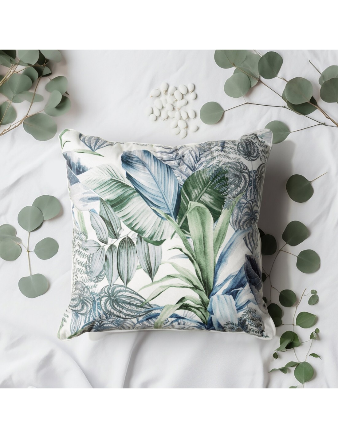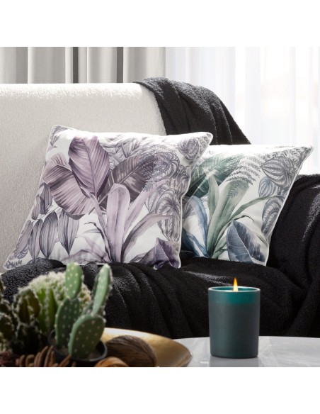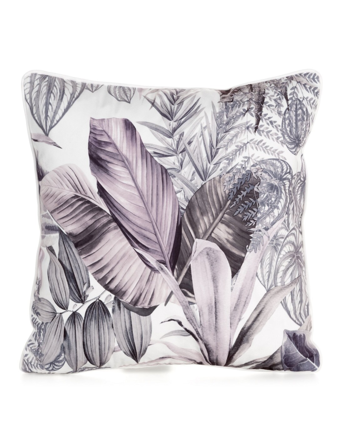 Welwetowa poszewka dekoracyjna z kwiatowym nadrukiem szerokość: 45 cm, długość: 45 cm, kolor: fioletowy, Gramatura: 200 GSM, Skład: 100% poliester