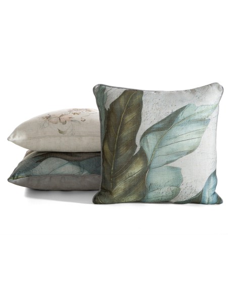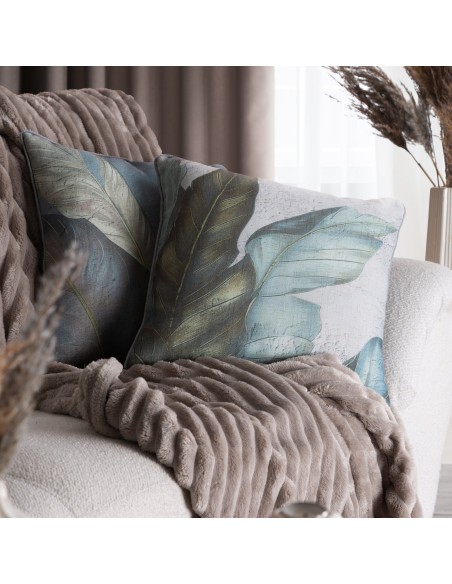 Poszewka wykonana z tkaniny imitującej len, obszyta ozdobną lamówką szerokość: 45 cm, długość: 45 cm, kolor: zielony, Skład: 100% poliester