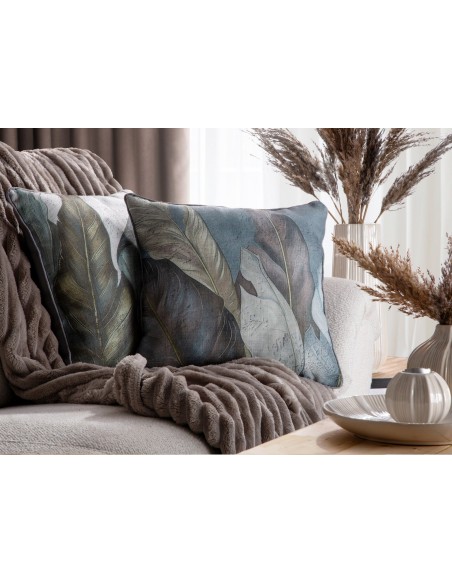 Poszewka wykonana z tkaniny imitującej len, obszyta ozdobną lamówką szerokość: 45 cm, długość: 45 cm, kolor: zielony, Skład: 100% poliester