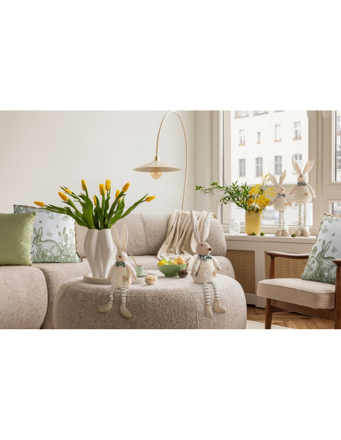 Królik wielkanocny szerokość: 13 cm, długość: 9 cm, kolor: beżowy, Skład: 100% poliester