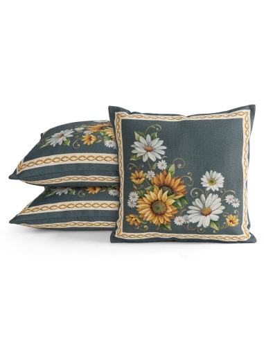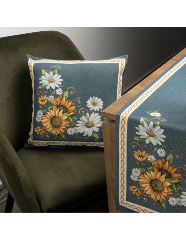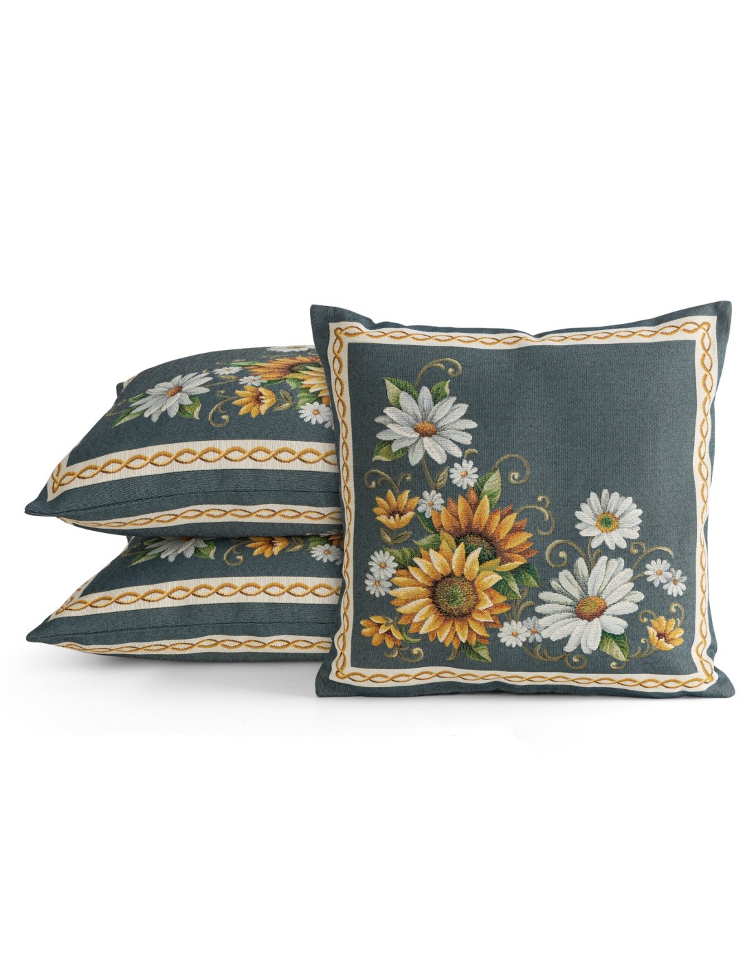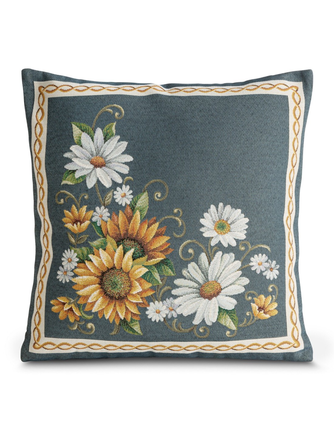 Poszewka gobelinowa szerokość: 45 cm, długość: 45 cm, kolor: ciemnoturkusowy, Skład: 63% poliester, 34% bawełna, 3% akryl