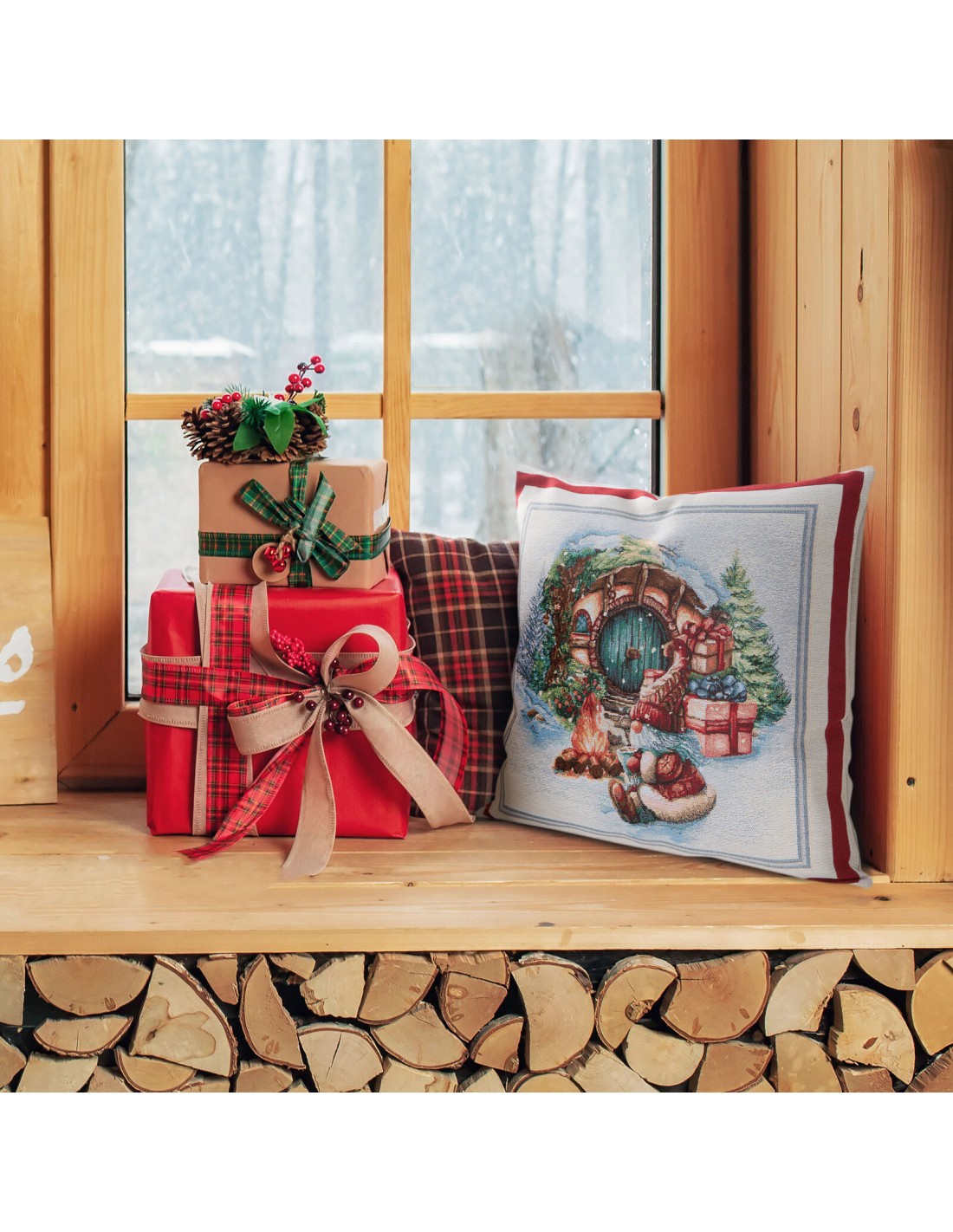 Poszewka gobelinowa ze świątecznym wzorem szerokość: 45 cm, długość: 45 cm, kolor: czerwony, Gramatura: 415 GSM, Skład: 83% poliester, 15% bawełna, 2% lureks
