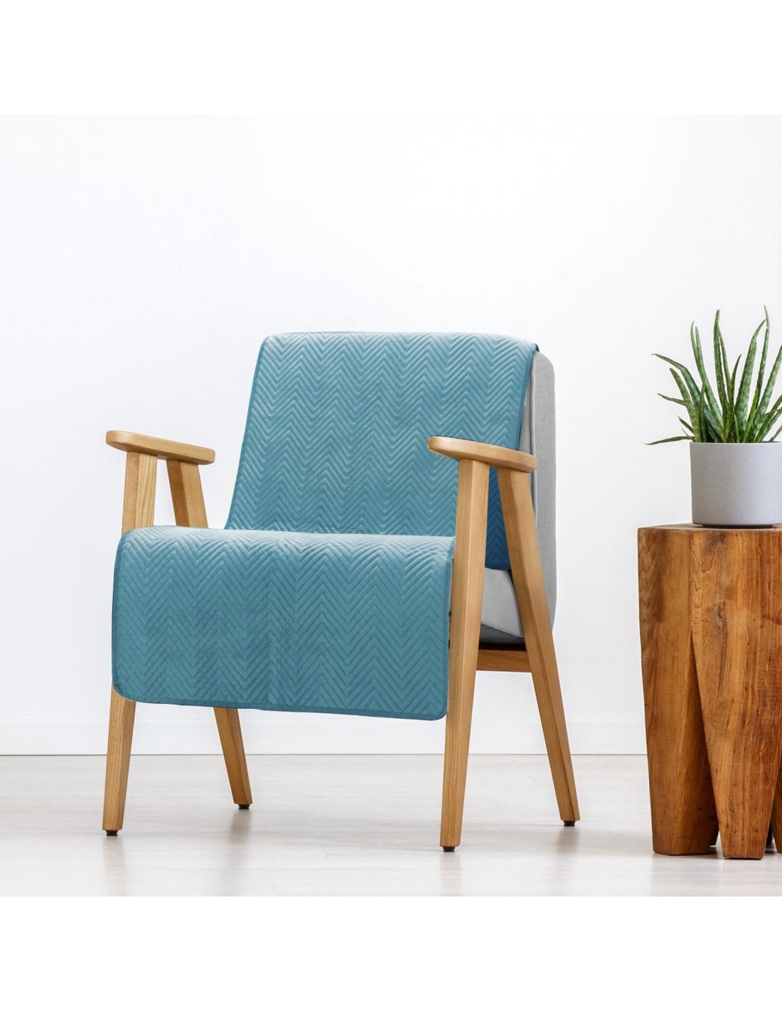 Ekskluzywna narzuta na łóżko z miękkiego i przyjemnego w dotyku welwetu pikowanego w dużą, gęstą jodełką. Do pikowania wykorzystano metodę bezszwową hotpress. szerokość: 70 cm, długość: 160 cm, kolor: niebieski, Gramatura: 250 GSM, Skład: 100% poliester