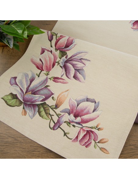 Obrus gobelinowy szerokość: 45 cm, długość: 140 cm, kolor: naturalny, Gramatura: 410 GSM, Skład: 63% poliester, 34% bawełna, 3% akryl