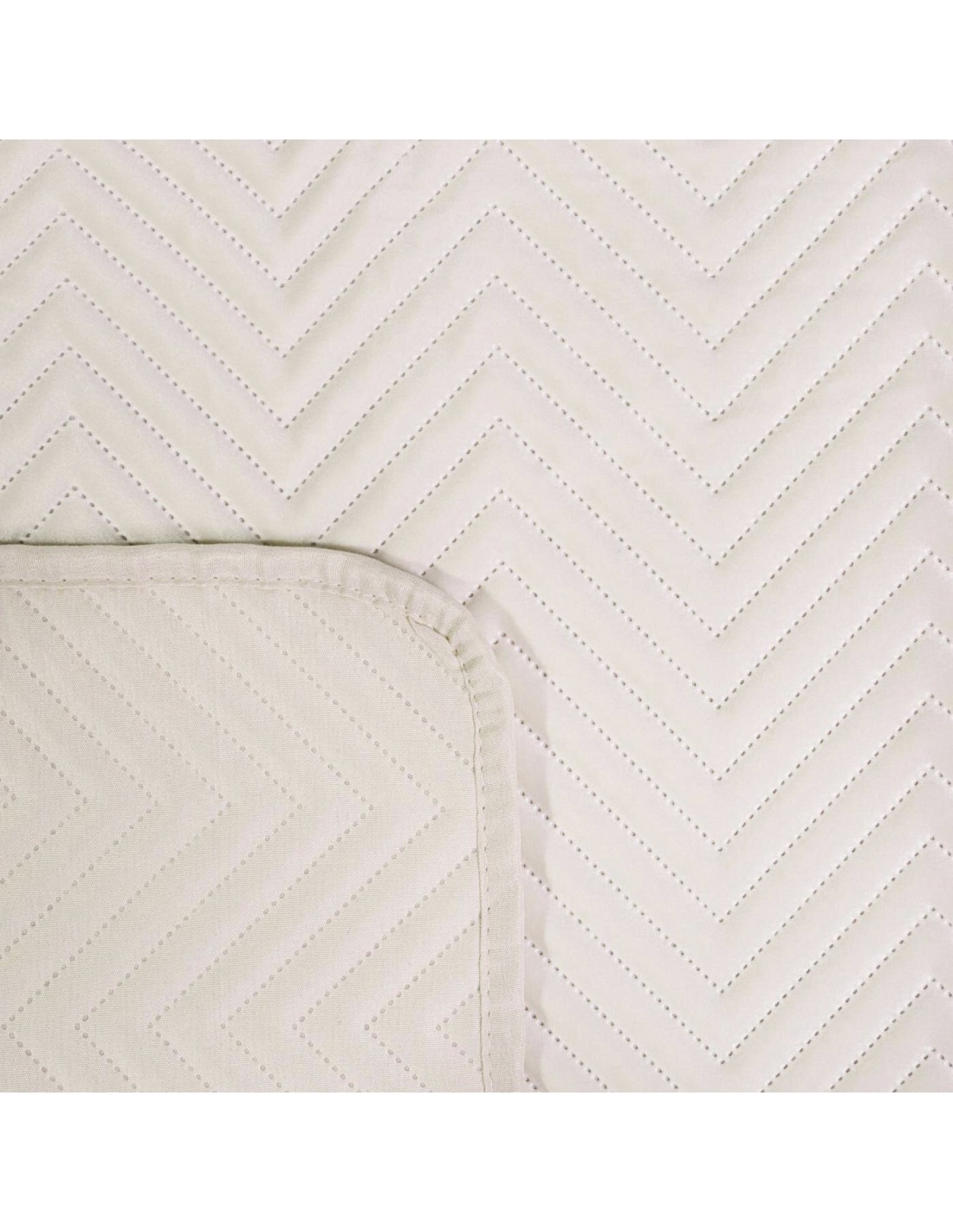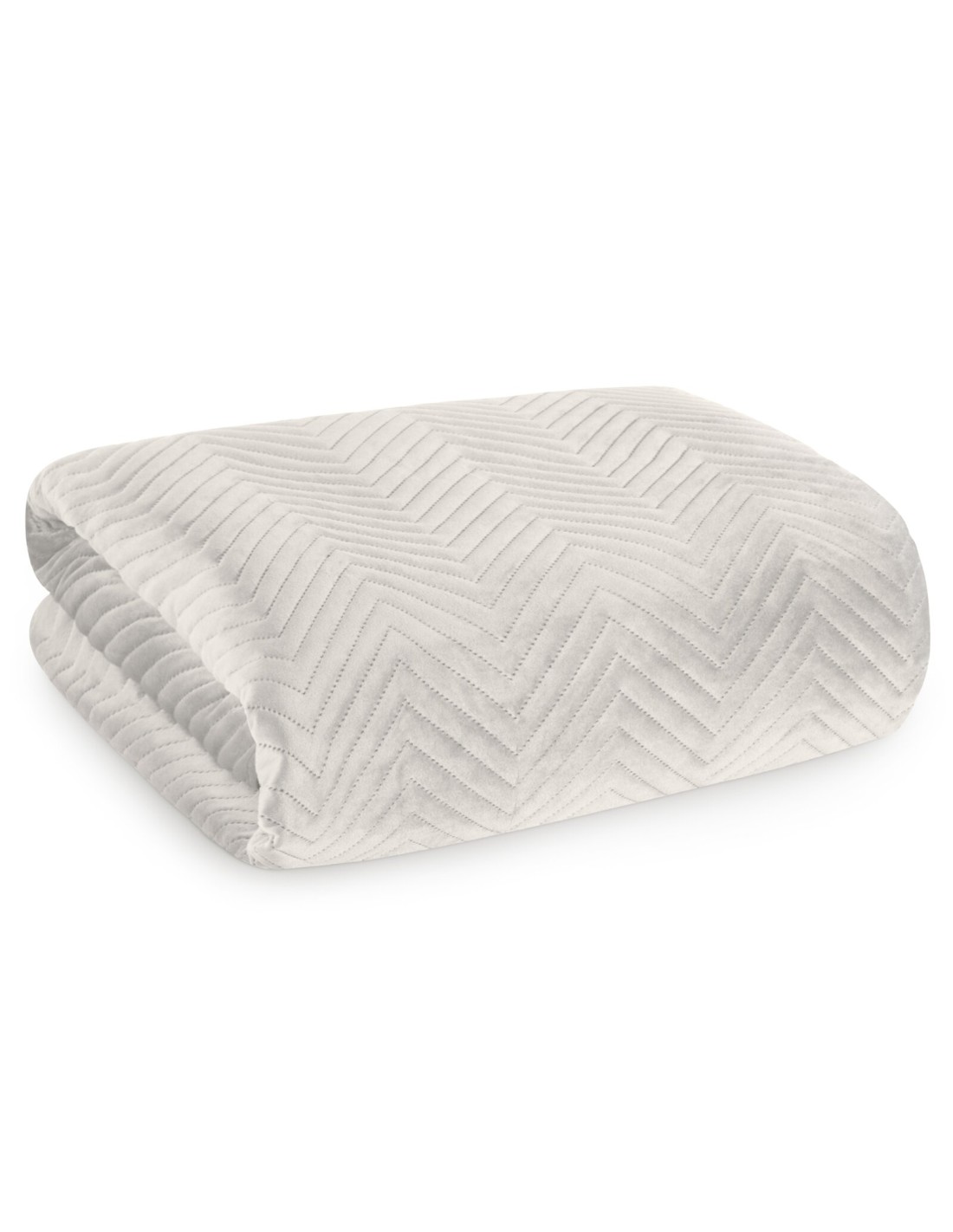 Ekskluzywna narzuta na łóżko z miękkiego i przyjemnego w dotyku welwetu pikowanego w dużą, gęstą jodełką. Do pikowania wykorzystano metodę bezszwową hotpress. szerokość: 170 cm, długość: 210 cm, kolor: kremowy, Gramatura: 250+120+65 GSM, Skład: 100% poliester