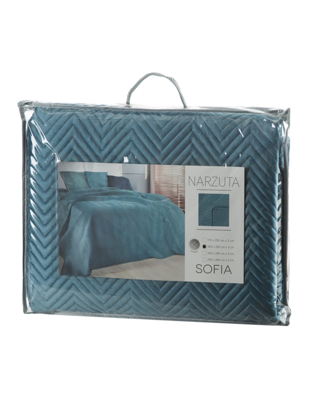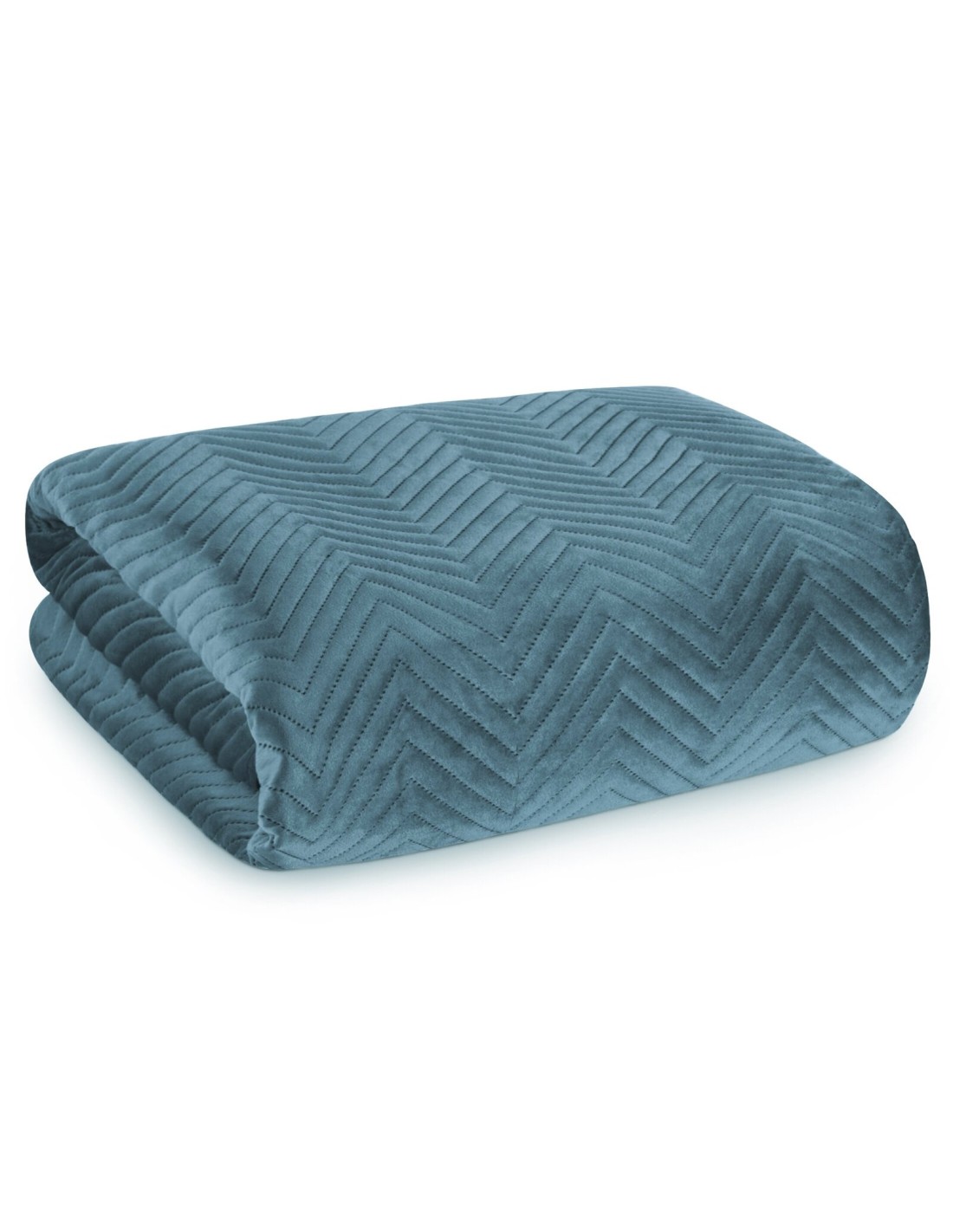 Ekskluzywna narzuta na łóżko z miękkiego i przyjemnego w dotyku welwetu pikowanego w dużą, gęstą jodełką. Do pikowania wykorzystano metodę bezszwową hotpress. szerokość: 220 cm, długość: 240 cm, kolor: niebieski, Gramatura: 250 GSM, Skład: 100% poliester