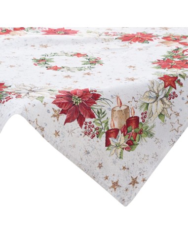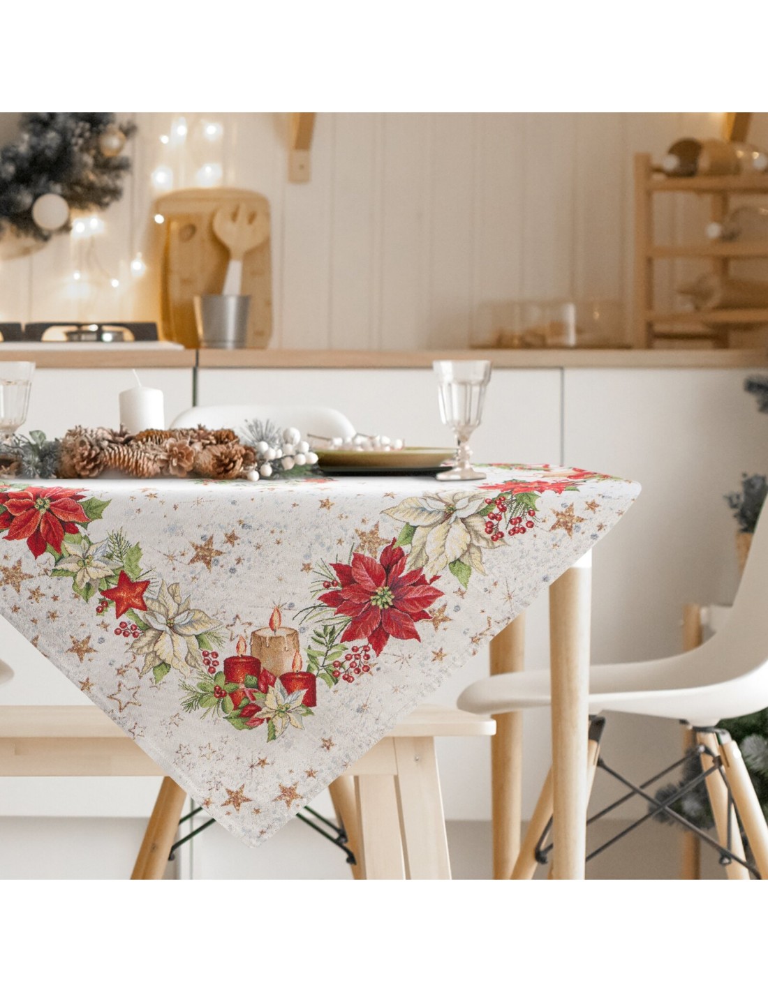 Obrus gobelinowy ze świątecznym wzorem szerokość: 140 cm, długość: 180 cm, kolor: naturalny, Skład: 63% poliester, 34% bawełna, 3% akryl