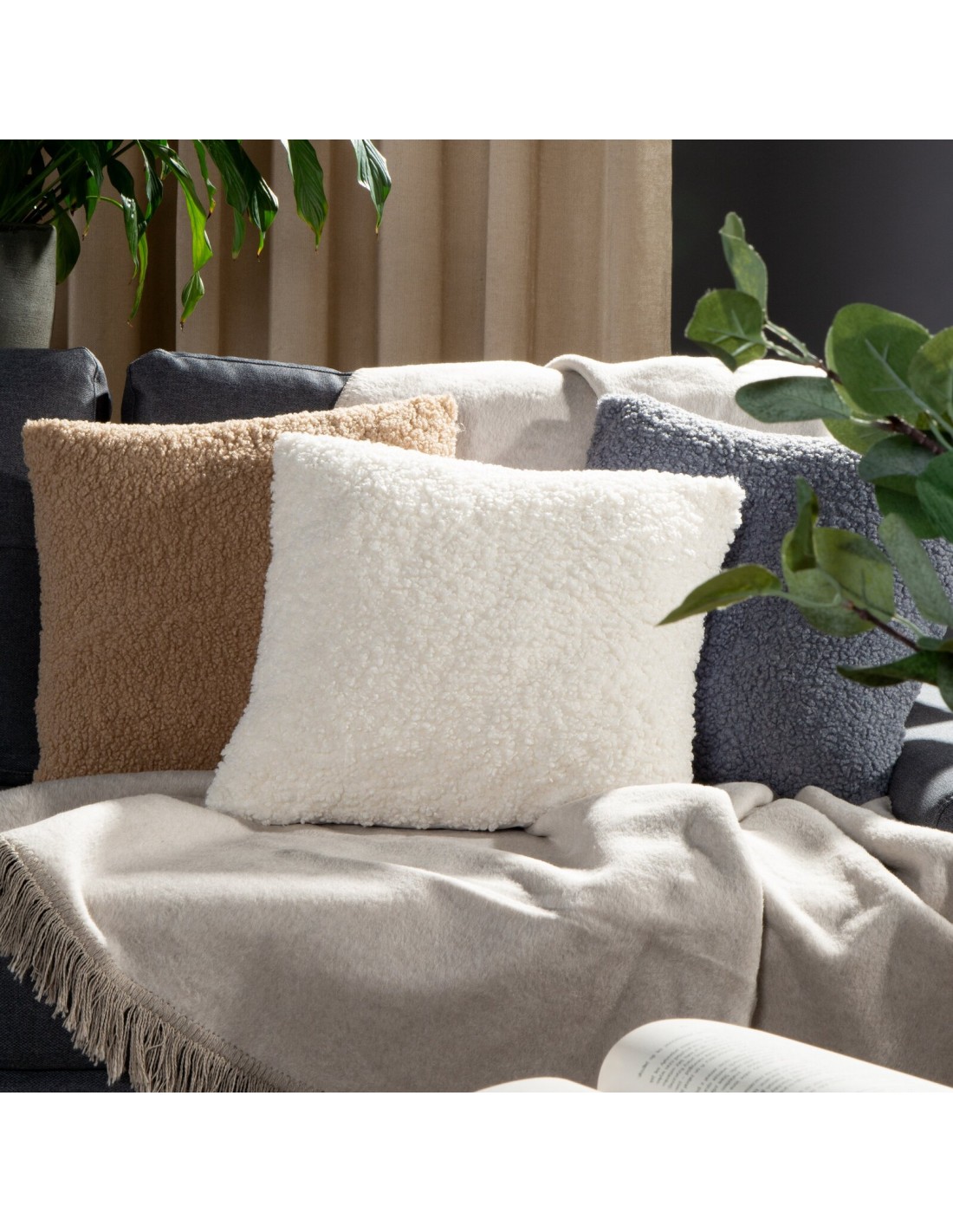Poszewka dekoracyjna imitująca buklę szerokość: 45 cm, długość: 45 cm, kolor: beżowy, Gramatura: 260 GSM, Skład: 100% poliester