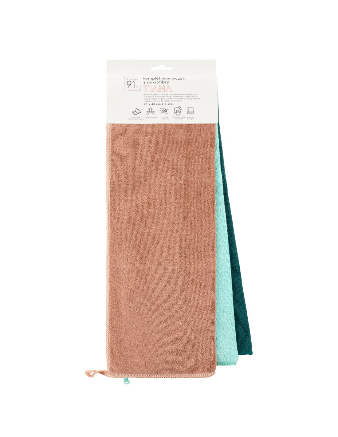 Zestaw 3 wyjatkowo miękkich ściereczek z mikrofibry szerokość: 40 cm, długość: 40 cm, kolor: ciemnozielony, Gramatura: 300 GSM, Skład: 20% poliamid, 80% poliester