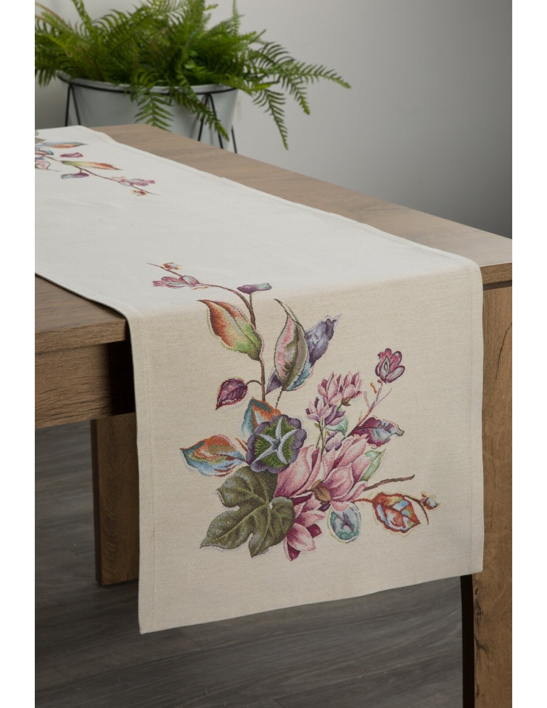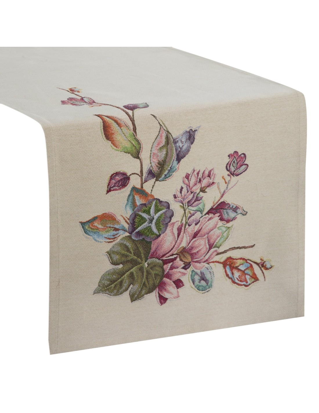 Obrus gobelinowy szerokość: 45 cm, długość: 140 cm, kolor: naturalny, Gramatura: 410 GSM, Skład: 63% poliester, 34% bawełna, 3% akryl