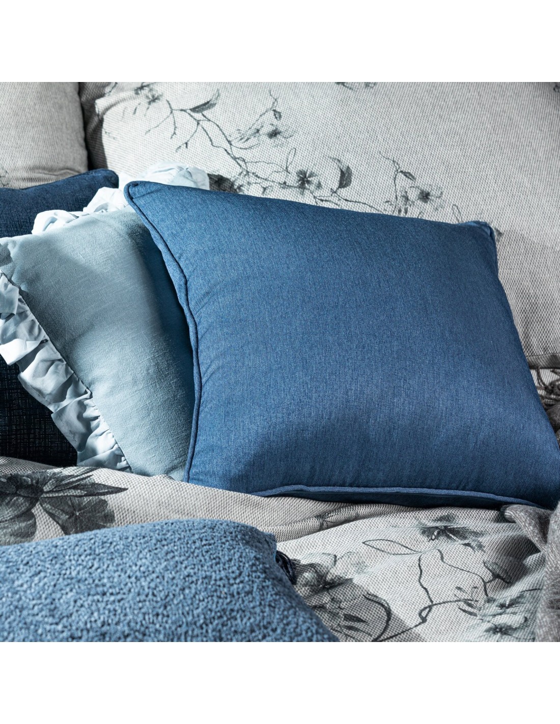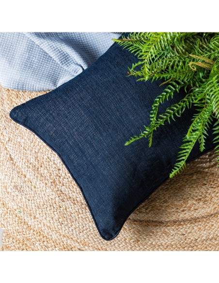 Poszewka dekoracyjna zdobiona lamówką szerokość: 50 cm, długość: 50 cm, kolor: granatowy, Gramatura: 360 GSM, Skład: 100% poliester
