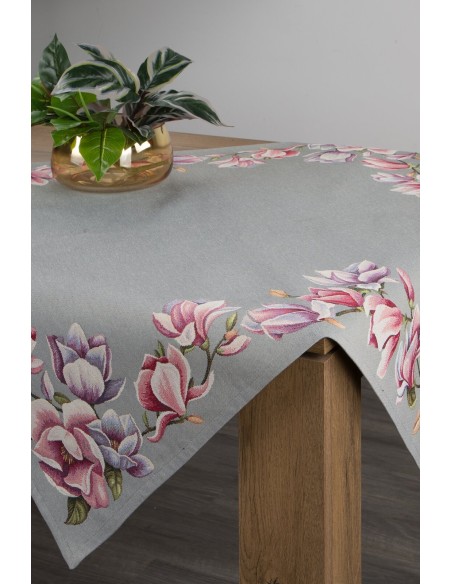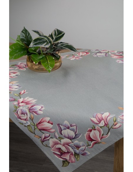 Obrus gobelinowy szerokość: 100 cm, długość: 100 cm, kolor: popielaty, Gramatura: 410 GSM, Skład: 63% poliester, 34% bawełna, 3% akryl
