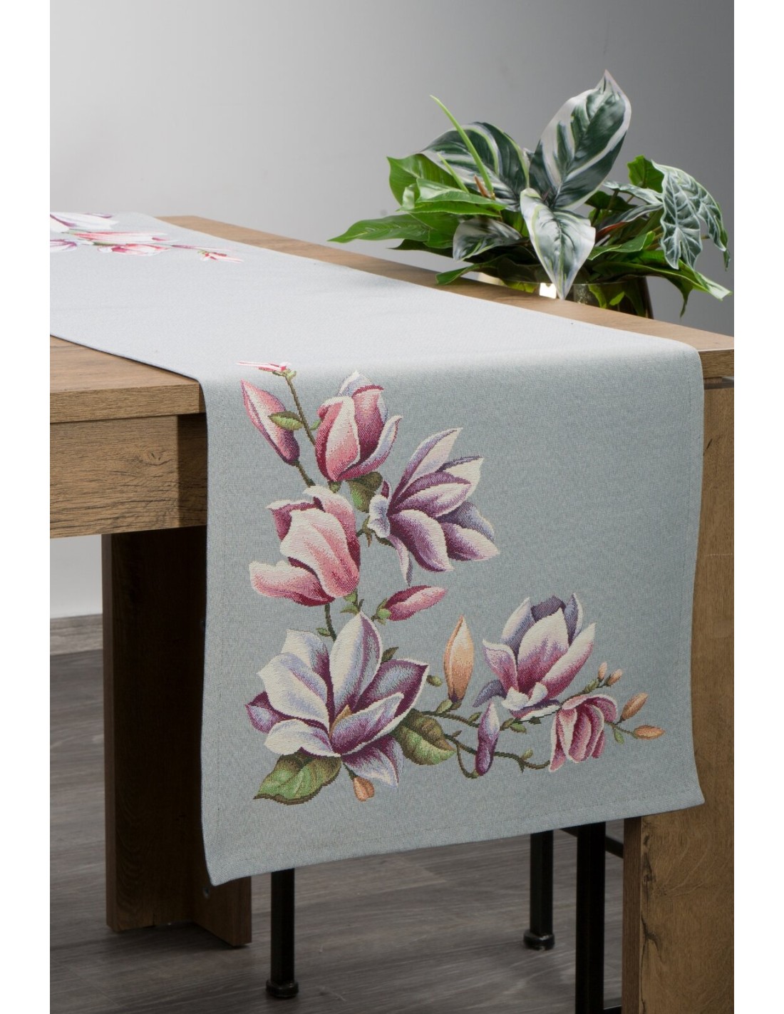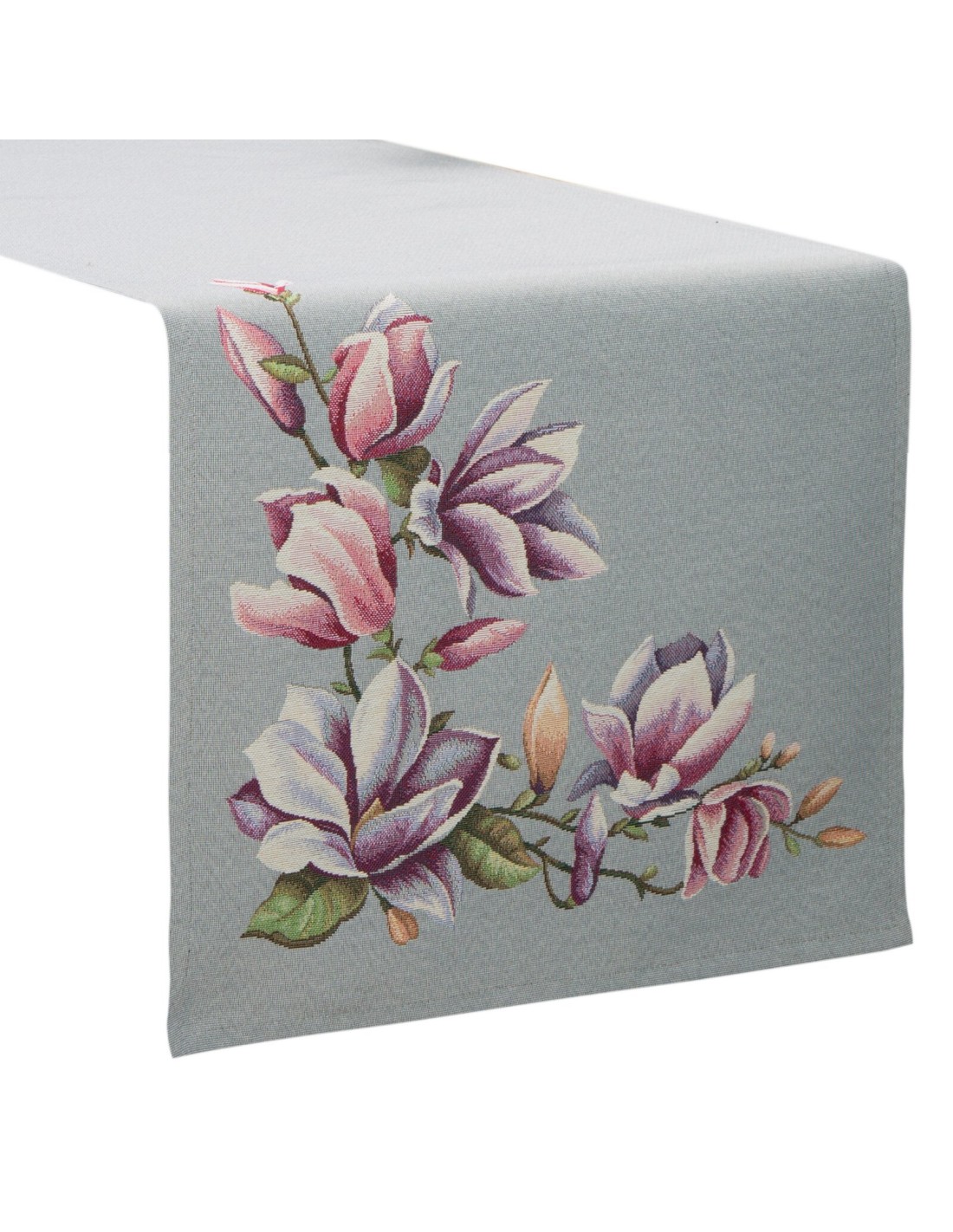 Obrus gobelinowy szerokość: 45 cm, długość: 140 cm, kolor: popielaty, Gramatura: 410 GSM, Skład: 63% poliester, 34% bawełna, 3% akryl