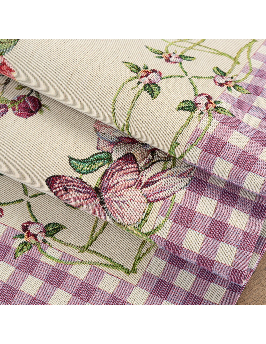 Obrus gobelinowy szerokość: 100 cm, długość: 100 cm, kolor: fioletowy, Gramatura: 410 GSM, Skład: 63% poliester, 34% bawełna, 3% akryl
