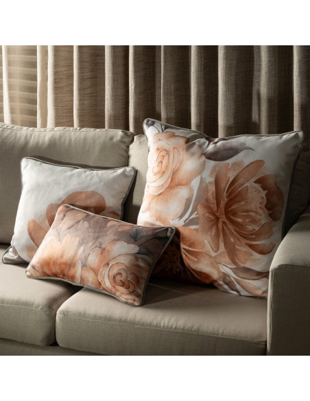Poszewka dekoracyjna z welwetu hiszpańskiego ze wzorem kwiatowym szerokość: 45 cm, długość: 45 cm, kolor: biały, Gramatura: 360 GSM, Skład: 100% poliester