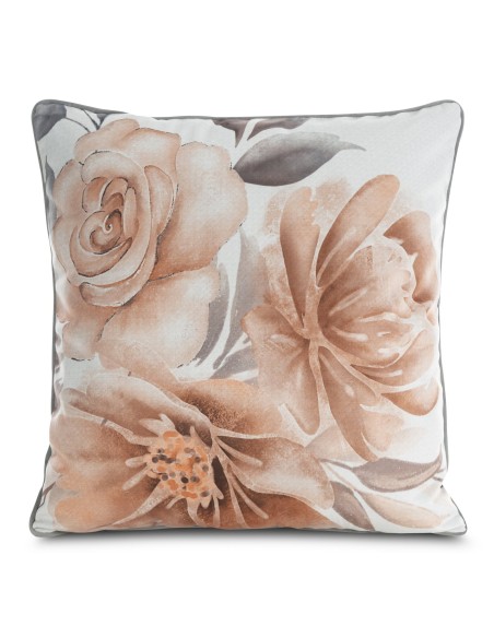 Poszewka dekoracyjna z welwetu hiszpańskiego ze wzorem kwiatowym szerokość: 60 cm, długość: 60 cm, kolor: beżowy, Gramatura: 360 GSM GSM, Skład: 100% poliester