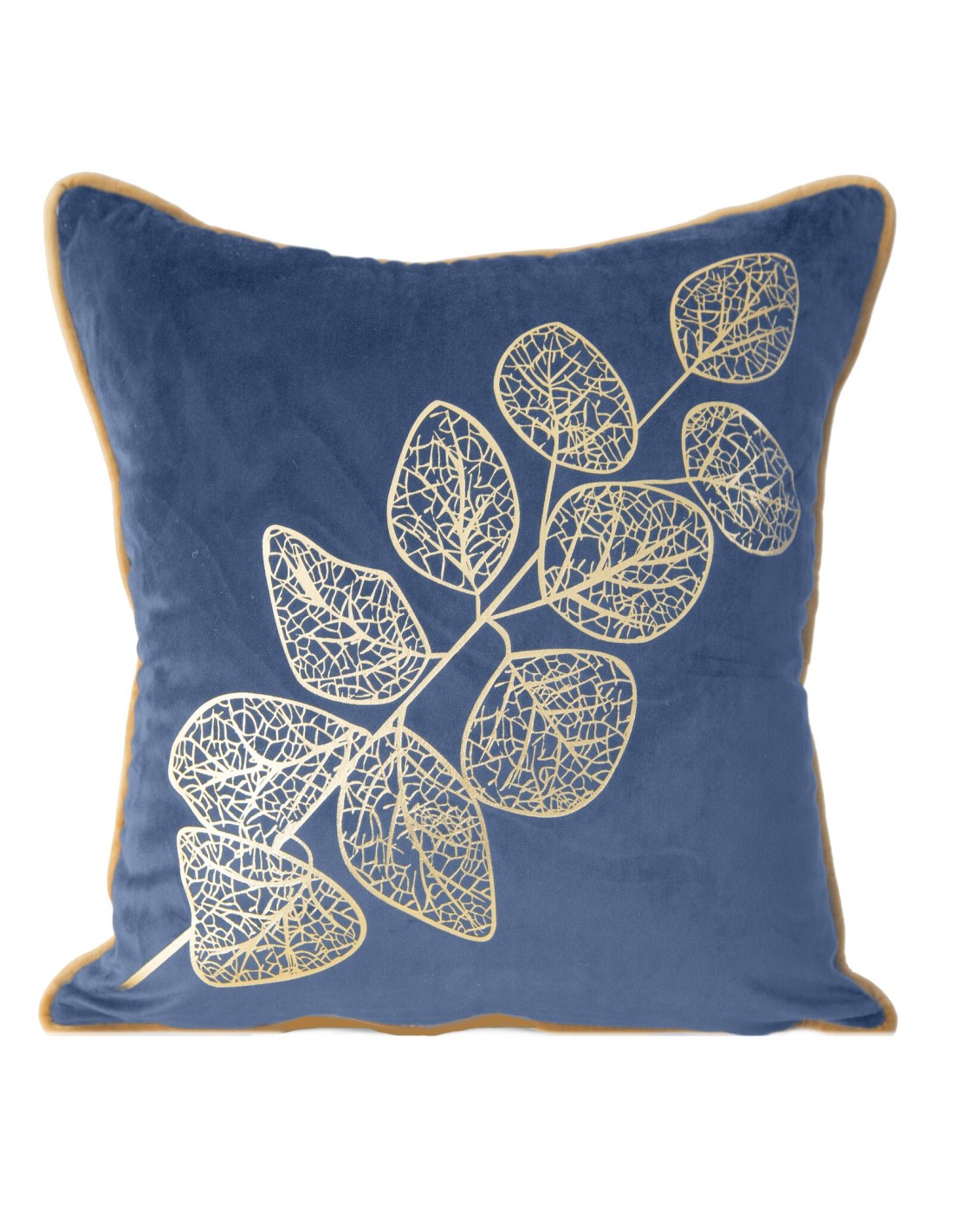 Welwetowa poszewka dekoracyjna ze złotym nadrukiem szerokość: 45 cm, długość: 45 cm, kolor: granatowy, Gramatura: 250 GSM GSM, Skład: 100% poliester
