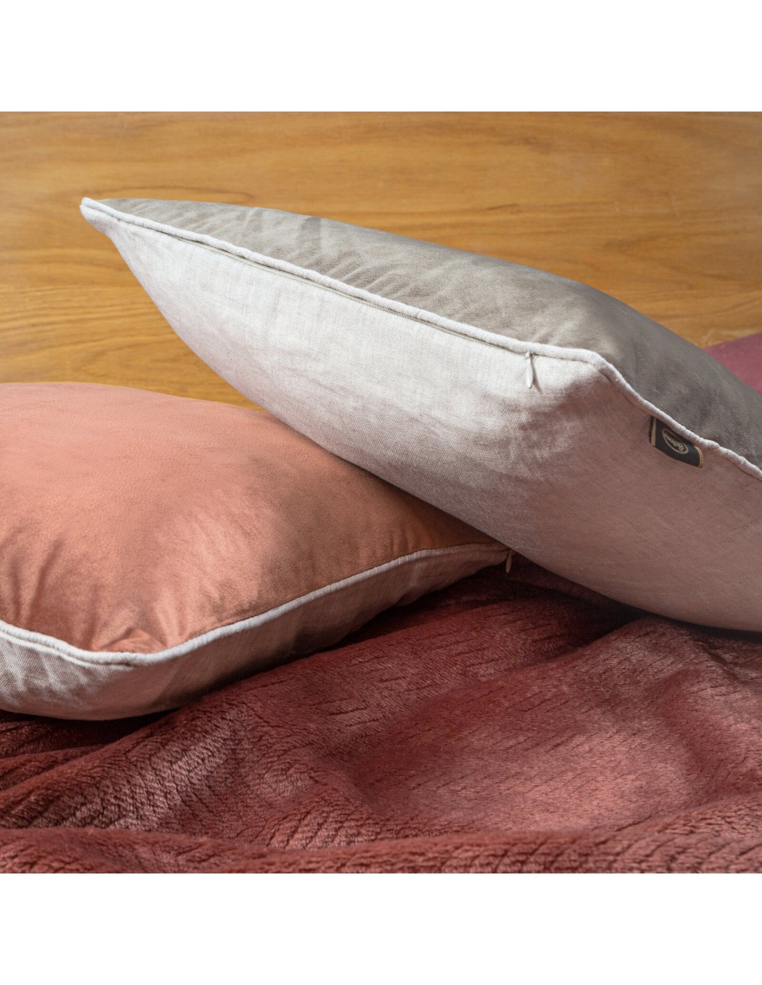 Poszewka dekoracyjna dwustronna welwet i len szerokość: 45 cm, długość: 45 cm, kolor: beżowy, Gramatura: 250GSM GSM, Skład: 100% poliester