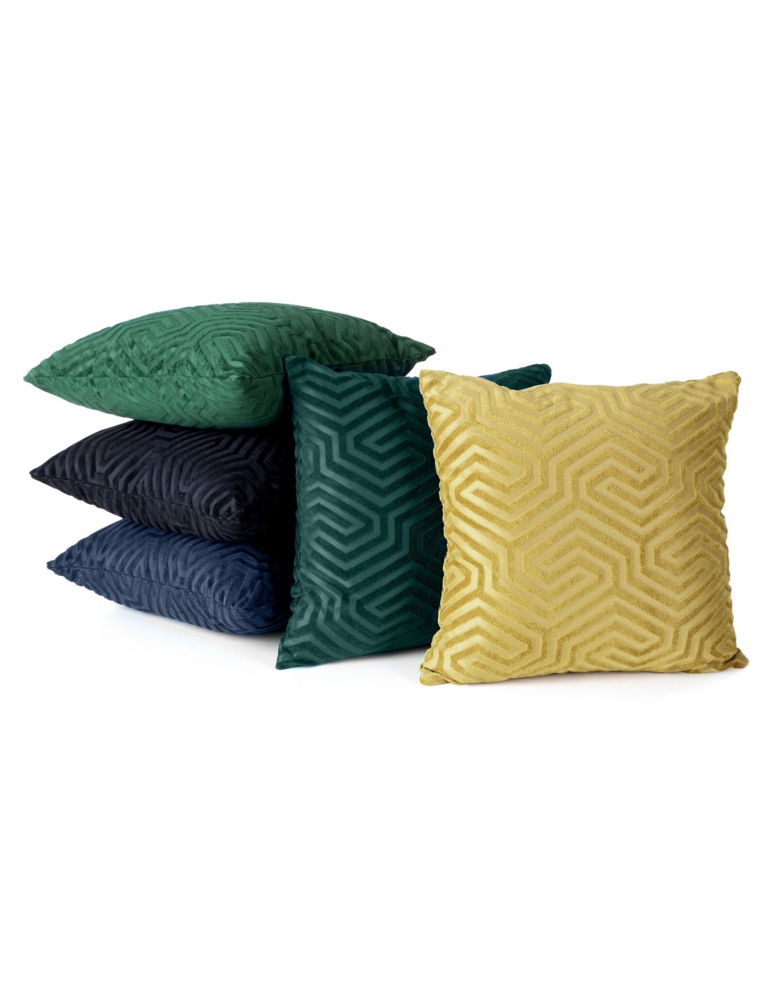 Poszewka z welwetu żakardowego z motywem geometrycznym szerokość: 40 cm, długość: 40 cm, kolor: granatowy, Gramatura: 320 GSM, Skład: 100% poliester