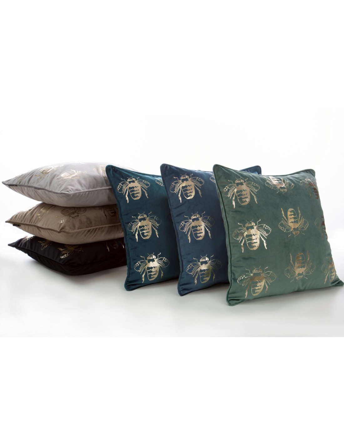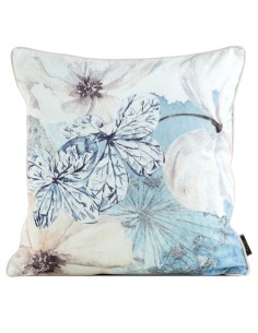 Welvetowa poszewka z nadrukiem,obszyta dekoracyjną lamówką szerokość: 45 cm, długość: 45 cm, kolor: niebieski, Gramatura: 250 GSM, Skład: 100% poliester